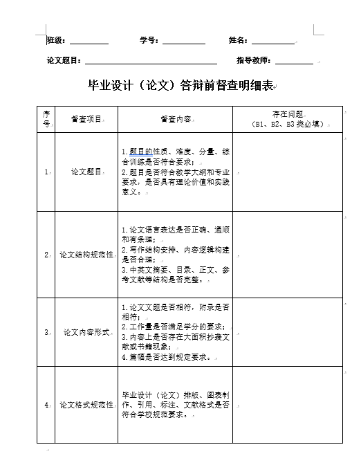 附件1. 毕业设计(论文)答辩前督查明细表.docx