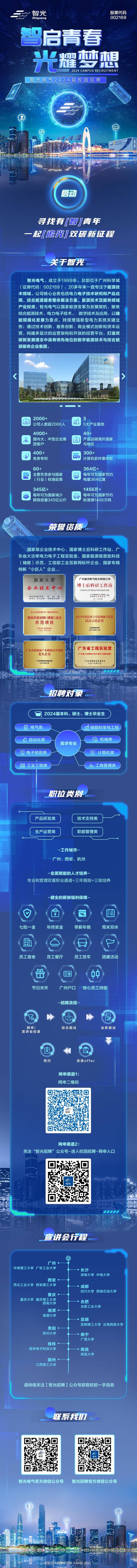 【智光电气2024届校招宣讲会——kaiyun登录中国入口登录专场】智光集团(股票代码:002169)成立于1999年,总部位于广州,公司核心产品包括电力电子产品、储能系统及产品、电力传输产品,均处于国内领先水平。 400+各类专利 300+计算机软件著作权 60+主要负责或参与国家(行业)标准起草 2000+人数规模 4000+国内大、中型企业集团客户……【所需岗位及专业(2024本硕博应届毕业生)】1、电气工程师:电力/电气工程系统及其自动化、工业工程等相关专业;2、研发工程师:电气工程、自动化、控制工程、电力电子与电力传动、能源与动力工程、动力工程及工程热物理、计算机类等相关专业;3、结构工程师:机械设计制造、机械电子工程、自动化等;4、财务专员:会计学、财务管理专业等;5、储备干部:专业不限;【宣讲会流程】学校宣讲会 →面试 (第 1天)→发放offer (第 2天)→签约宣讲会结束,第 2天安排面试,面试结果当天告知,最快 第2 天即可拿到令人心动的offer【薪资福利】1. 有竞争力的薪酬2. 成熟的培训及晋升机制3. 生活无忧,七险一金+员工餐厅+通勤班车+温馨宿舍+周末双休+各种不定期福利【投递方式】附上网申二维码,扫码即可网申 越早投递简历,越早筛选简历,宣讲会结束后即可安排面试,离offer更近一步 宣讲会时间地点 学校:kaiyun登录中国入口登录宣讲教室:kaiyun登录中国入口登录201宣讲时间:9月7日(周四) 19:00智启,星辰大海光耀,广阔天空智光电气,期待你的加入!!