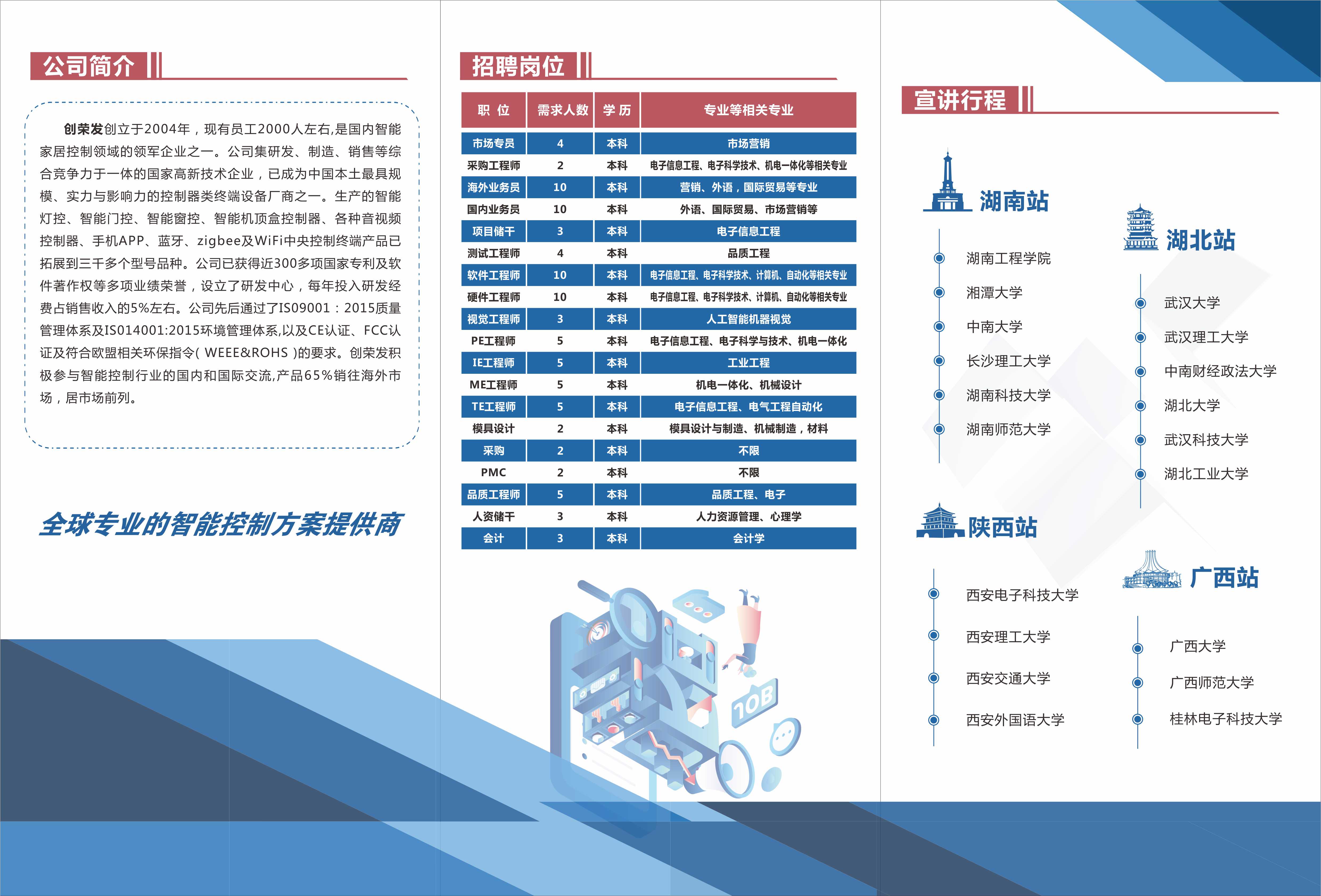 创赢未来职等你来!【kaiyun登录中国入口登录宣讲会】宣讲地点:kaiyun登录中国入口登录东校园大学生活动中心三楼培训室(319)宣讲时间:11月10日下午15:00-17:00岗位研发类:软件工程师、硬件工程师技术类:专利工程师、视觉工程师、PE工程师、模具设计、结构工程师、品质工程师、生产储干运营服务类:采购工程师、会计、市场专员、外贸业务、人资储干投递方式宣讲会现场可扫码投递电子简历或纸质简历,有HR现场面试,网申渠道:adm09@cn-cdrc.com。深圳创荣发欢迎你的加入!@全体成员