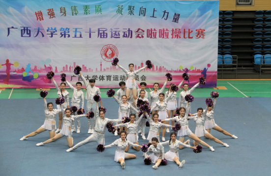 比赛现场,音乐响起,掌声雷动,参赛运动员伴随着欢快激越的节奏、舞起整齐划一的动作,给观众带来精彩的啦啦操盛宴。我院啦啦操队在大学院组里压轴出场。他们迈着轻快的步伐跑向比赛场地,银白色的运动服装在聚光灯的照射下显得格外惹人注目,手中的体操球与他们整齐且富有创新的动作相得益彰,紫色与银色在比赛场地中焕发出别具一格的风采。
