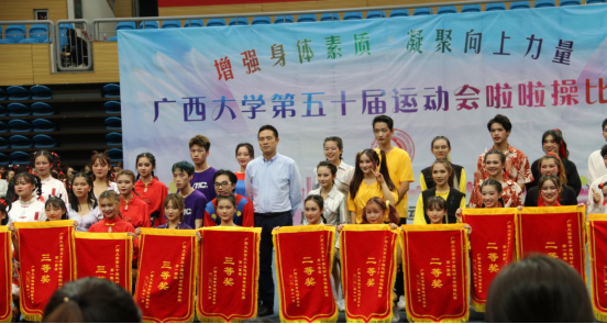 领导、老师与啦啦操队成员、团委学生会成员合影