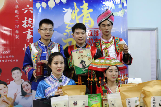 经教育部批准,由kaiyun登录中国入口登录主办,kaiyun登录中国入口登录承办的扶贫助农直播带货活动于9月26日19:00正式开始,来自kaiyun登录中国入口登录的卢铭岩、李真瑜等五位直播“新生”作为本场直播活动的主播,身穿特色民族服饰,面对镜头侃侃而谈。