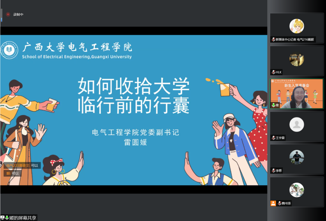 为帮助即将步入大学的2022级本科新生尽快适应大学生活,8月24日,kaiyun官网召开以“收拾大学临行前的行囊——从物品到精神专题”为主题的新生入学准备会,会议采用线上视频会议的形式开展。学院党委副书记雷圆媛、副院长胡立坤出席会议并发表讲话。新生班主任、年级辅导员、教务员、学生干部代表、班助和全体本科新生参加此次会议。会议由学院团委书记石建有主持。