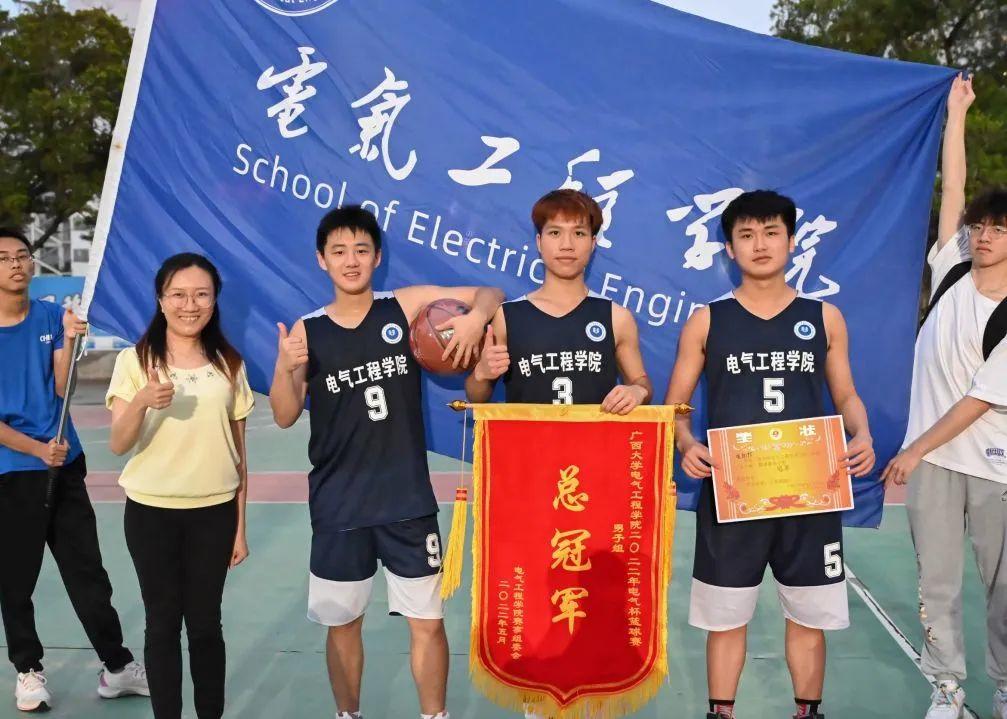 群雄逐鹿,球技交锋。5月12日,kaiyun官网“电气杯”篮球赛决赛在东校园体育场圆满落幕,学院党委副书记雷圆媛、团委书记石建有、团委副书记蒋冬连、辅导员李娟、辅导员李楠到现场为同学们加油助威,给获奖的团队颁发锦旗和奖品。