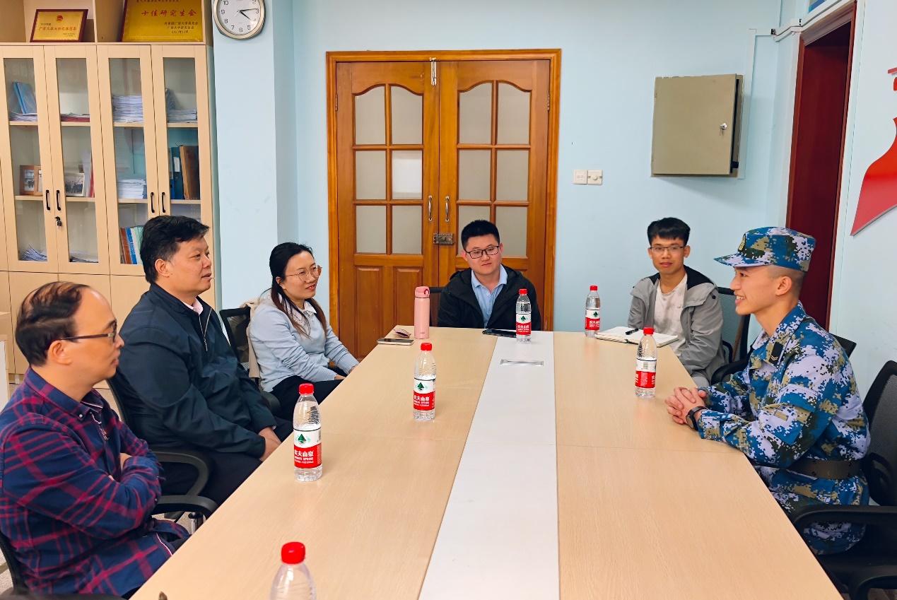 座谈会上,学院领导对马国富同学表示热烈欢迎,热切关注他的复学生活以及从军、护航的经历,党委书记梁志坚对马国富同学的入伍经历表示充分的肯定,希望他牢记军人誓言,不改初心,将部队中的优良作风融入到学习生活中,做到永葆初心、退役不褪色,在今后的学习中勇创佳绩。院长双丰指出,马国富同学无怨无悔地用美好的青春为祖国的国防事业做出贡献,能够在如此艰苦的环境下磨练自己的意志、不断提升自我,他为国贡献的精神值得点赞!党委副书记雷圆媛指出,生逢其时、躬逢盛世,希望马国富同学能够严格要求自己,主动担当时代责任,在为祖国和人民积极奉献中实现自己的人生价值。