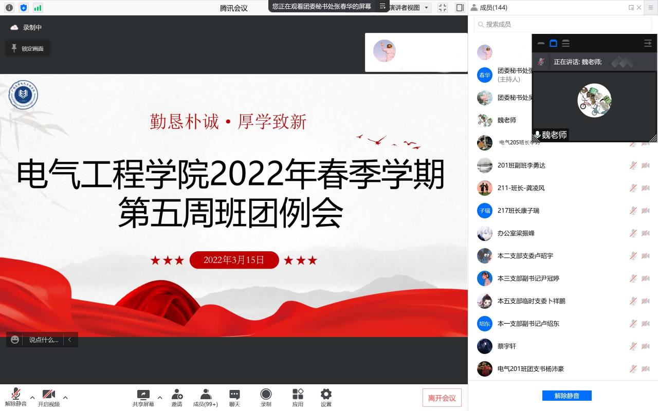 为提高学生的疫情防护意识,保障学生的自身健康安全,同时激励学生干部,为新学期做好全新的准备,kaiyun登录中国入口登录于3月15日下午召开2021-2022学年春季学期全体学生干部大会。本次会议采用线上视频会议的形式开展,学院党委副书记雷圆媛、团委书记石建有、团委副书记蒋冬连、全体辅导员和全体学生干部参加会议。