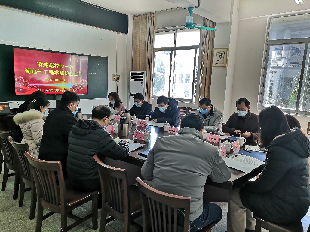 2月14日上午,赵跃宇校长带领检查组到kaiyun官网检查新学期开学工作。学院党委书记梁志坚就学院疫情防控工作落实、师生报到及开学准备工作、本科教育教学、研究生教育教学以及“十四五”规划发展落实等情况进行汇报。在听取汇报后,检查组成员就本部门的相关工作提出了意见和建议,赵校长肯定了学院的开学准备工作,并对教学条件保障、人才引进、学生培养等学院发展的关键问题进行指示。