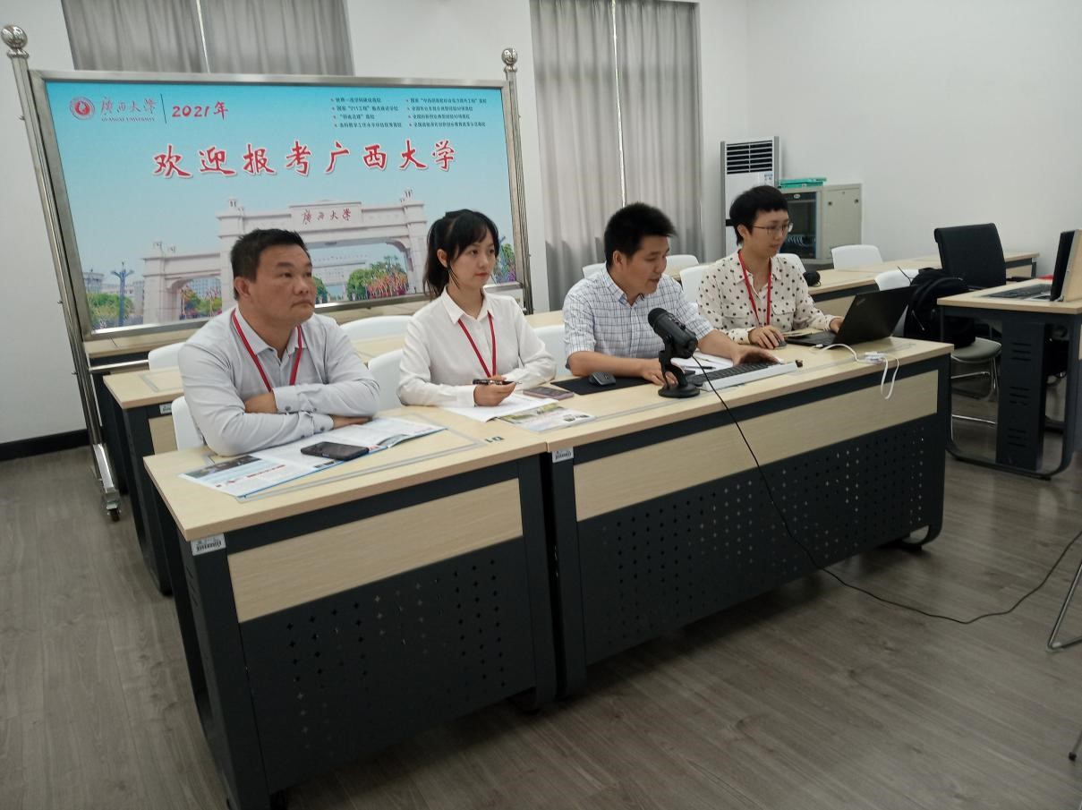 为丰富招生宣传的工作面,学院在线下开展定向精准招生宣传的基础上,利用QQ招生咨询群、网络直播、咨询电话等形式,为考生及家长提供高效快捷的线上招生咨询服务,双线结合,创新招生工作载体。6月26日,自治区招生考试院在广西IPTV(电视机顶盒)专门设置了网上咨询会板块,学院领导胡立坤教授、自动化系主任李修华副教授、电气工程系主任吴晖煌教授,学工组老师韦俞妃参与了kaiyun登录中国入口登录网上咨询会直播专场。通过广西招生考试院平台进行线上直播方式与广大考生及家长互动,采用“语音视频直播+弹幕互动”的直播形式,实时与200人次的考生及考生家长进行交流、解答。
