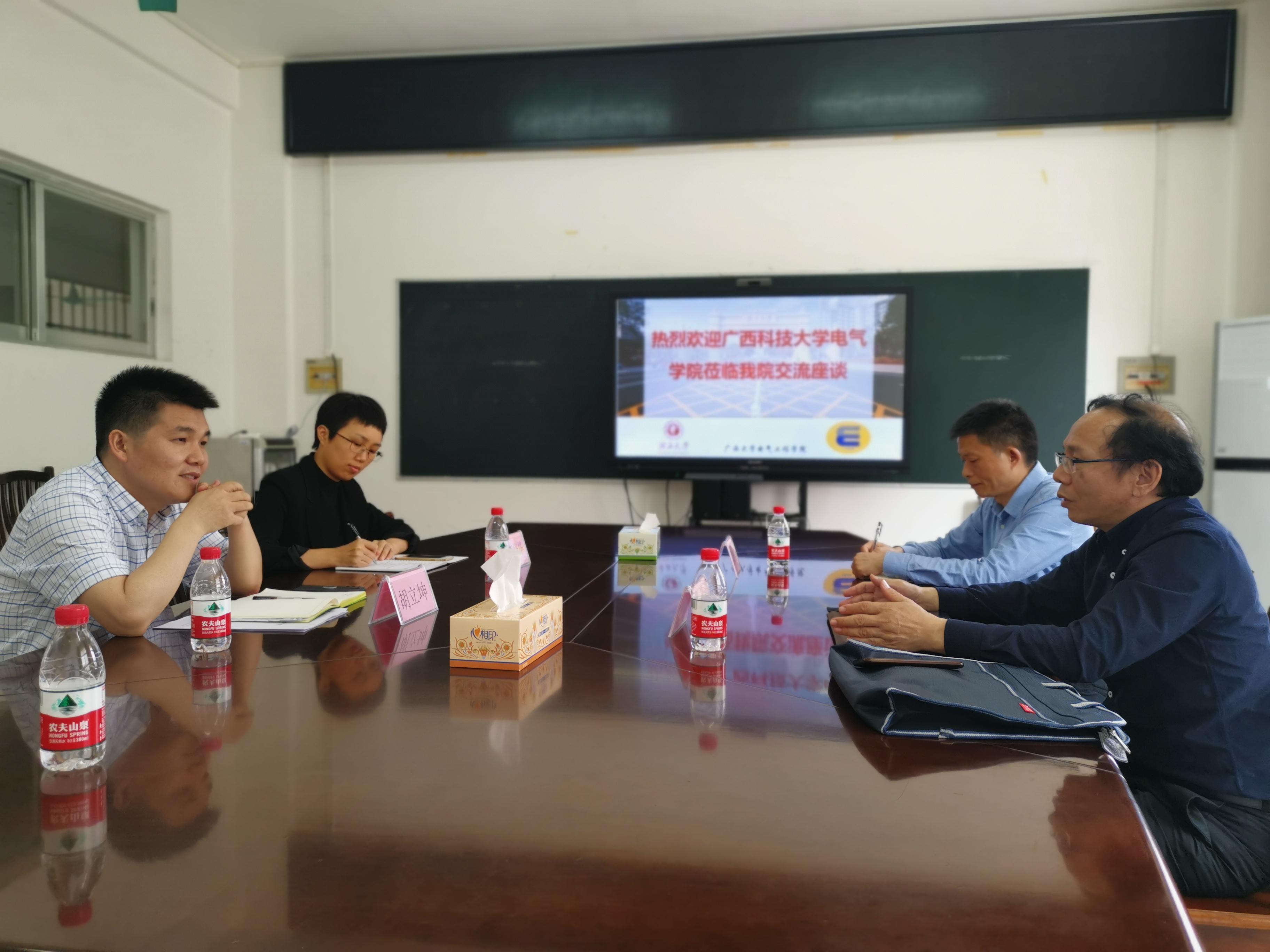 4月29日下午,广西科技大学电气与信息工程学院副院长潘盛辉一行2人来院进行交流座谈。学院副院长胡立坤和自动化系主任李修华参加座谈。
