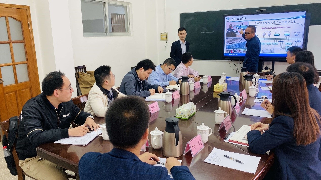会上,南宁轨道交通集团有限责任公司维修中心主任周航首先介绍本次来访的意图,并介绍了维修中心的职责以及目前从事的技术研发与改造项目。双方就人才培养、技术合作、培训互动开展了深入探讨。会议达成了初步合作意向。