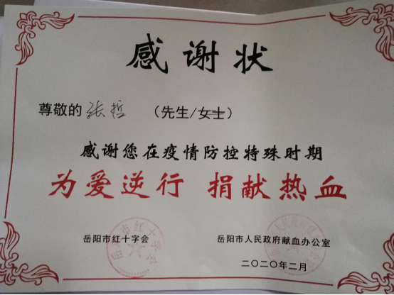 图2:张哲同学捐献血浆