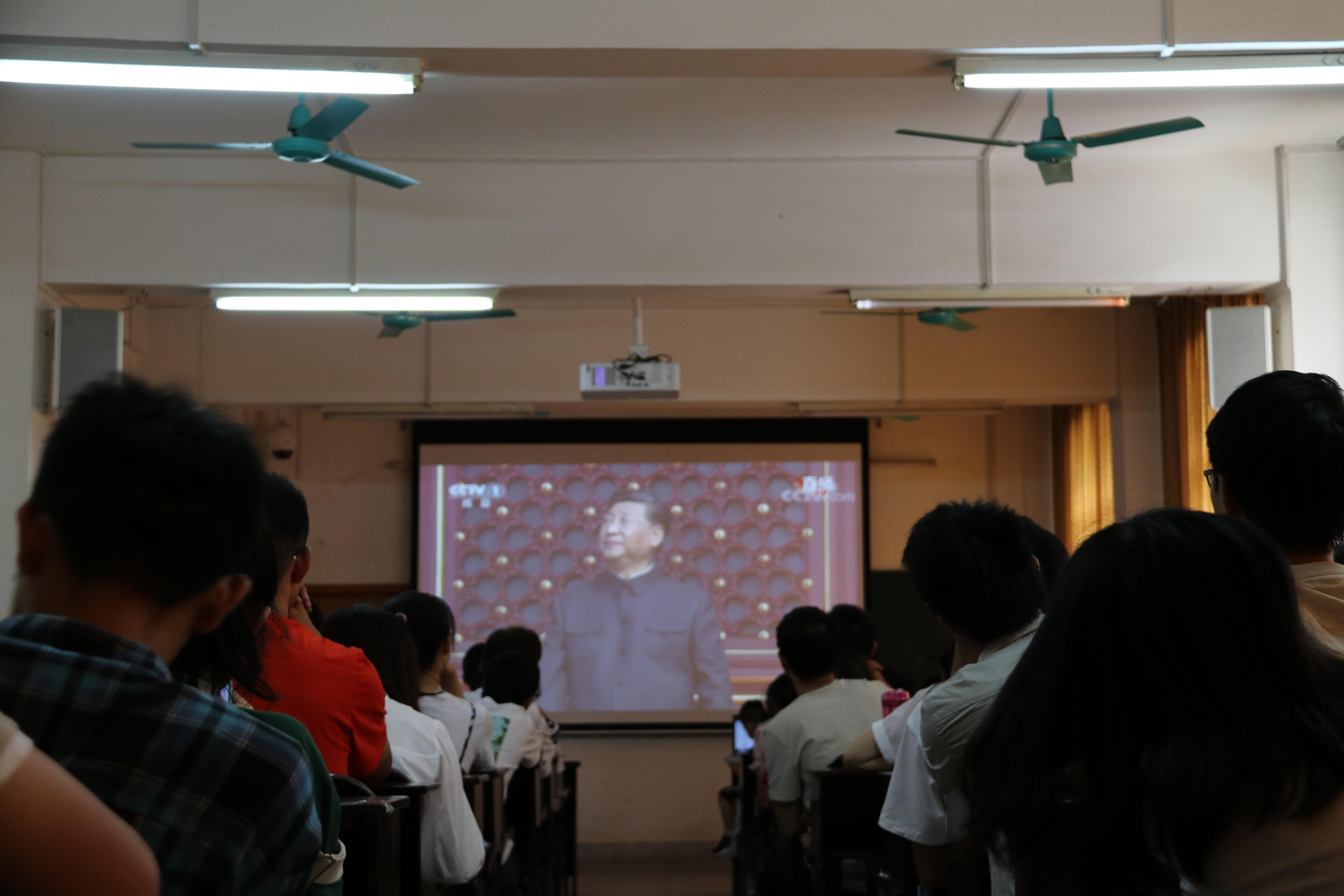 “国之大事,在祀与戎。” 上午十时,天安门广场上礼炮震彻云霄,旌旗告慰忠魂。当屏幕里出现国旗护卫队踏着整齐的步伐护送国旗从人民英雄纪念碑走向天安门时,全场肃静,全体起立,再次高唱国歌,衷心祝福伟大的祖国。随后,大家认真聆听学习了习近平总书记在庆祝大会上的重要讲话,习近平总书记在讲话中引领我们一起铭记历史,缅怀先烈,珍爱和平,激发我们继续团结奋进,开创未来。师生们万分激动,备受鼓舞,为国家的富强而无比自豪。