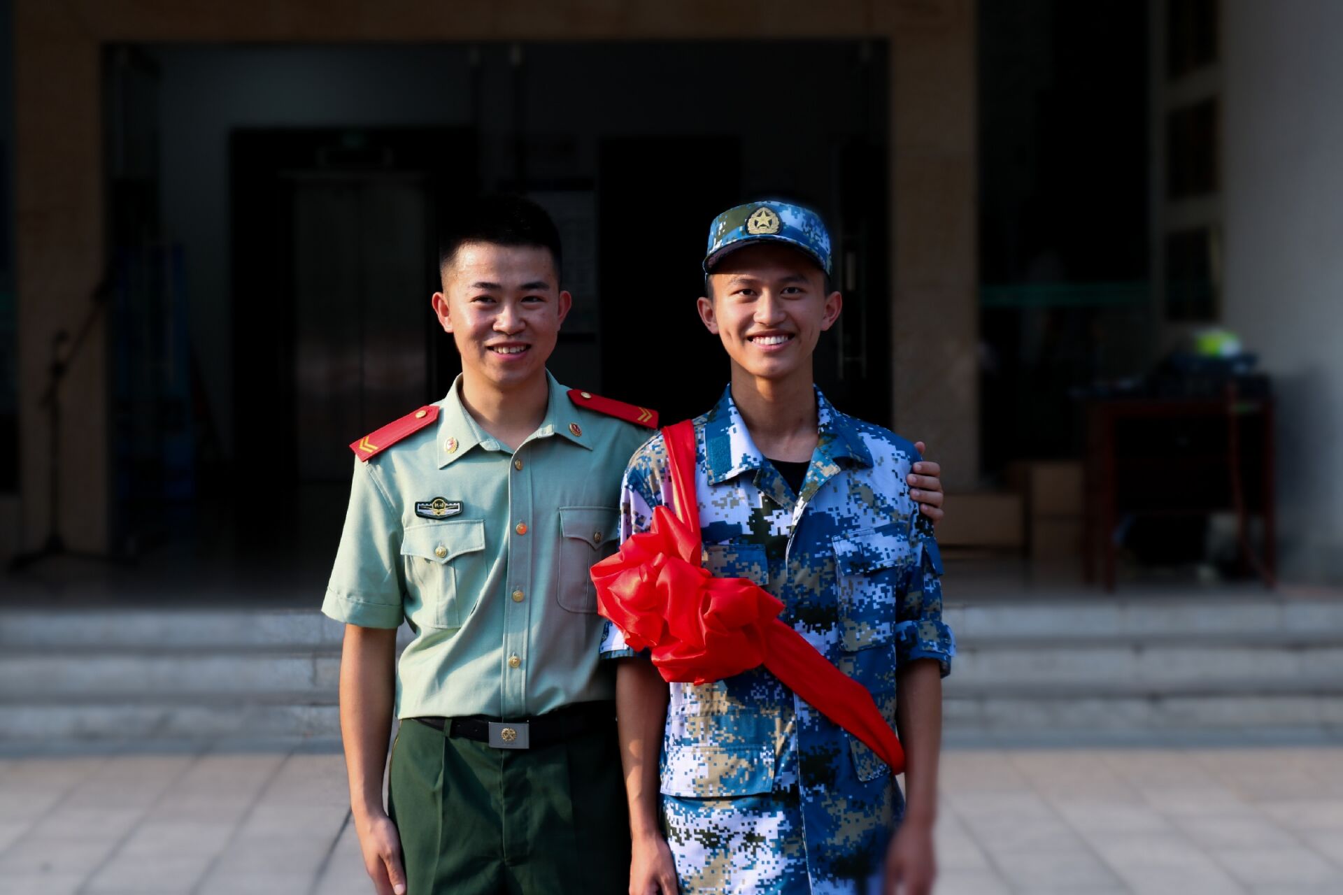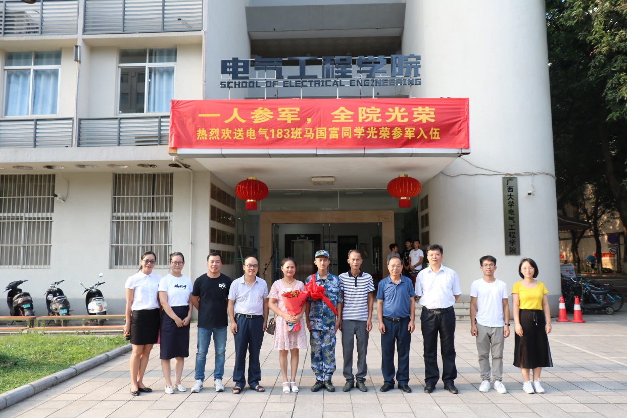 最后,学院领导、老师与马国富家属合影留念,欢送马国富同学去东校园集合点集合,奔赴军营。