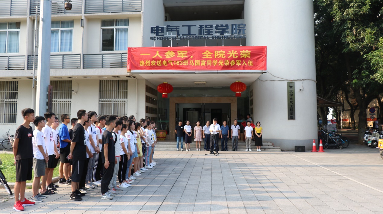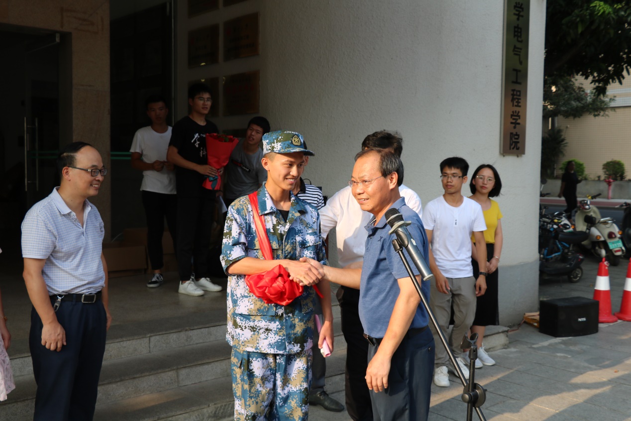 2019年9月15日下午17:00,kaiyun登录中国入口登录举行了电气类183班马国富同学参军入伍欢送仪式。学院党委书记梁京章、院长双丰、党委副书记梁志坚、学工组全体老师、退伍老兵余蒋成、团委组织部干部、电气类183班全体同学和马国富家长参加了欢送会。欢送会由学工组蒋冬连老师主持。