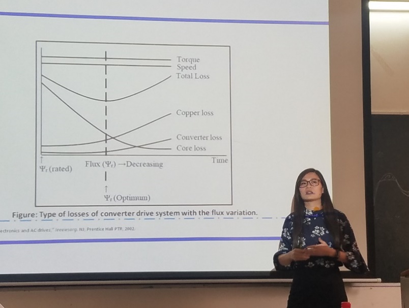 21日上午10点,沈思怡博士在kaiyun登录中国入口登录304室给学院师生作了“直接转矩控制感应电机驱动的能源效率优化”的学术报告,报告从感应电机空间矢量出发,讨论了基于铁耗感应电机的空间矢量方程,并推导了感应电机在确定输出转速和转矩情况下的最优损耗磁链方程。随后,张子敬博士给大家作了题目名为“智能优化与工程技术”的专题报告,研讨了利用Q-学习算法来进行光伏系统的输入输出数据回归分析并演算其动态式黑箱模型参数。这参数可用来编写遗传算法中的适应度函数,使其能更精准的搜索最佳解决方案。
