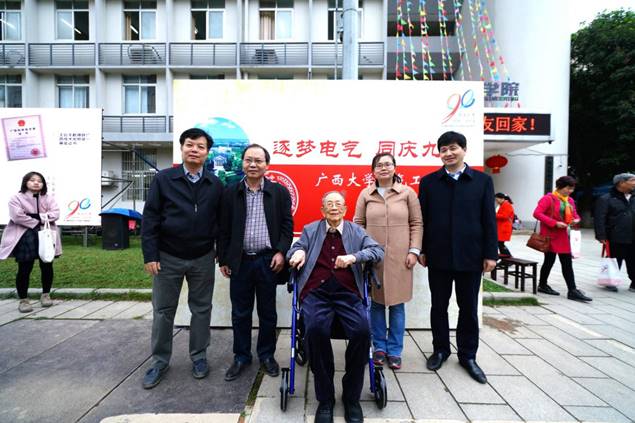 (唐兴祚老教授与学院领导老师合影留念)