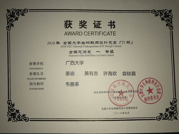 2018TI杯全国大学生物联网设计竞赛 全国一等奖