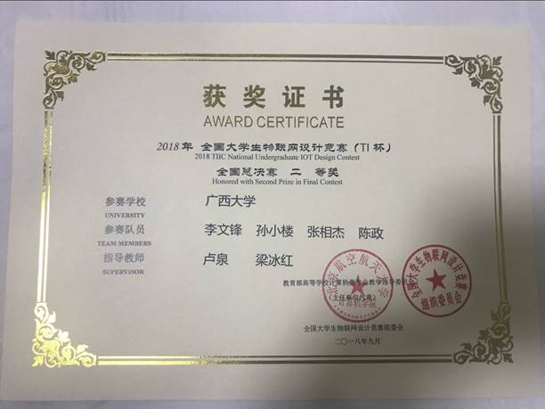 2018TI杯全国大学生物联网设计竞赛 全国二等奖