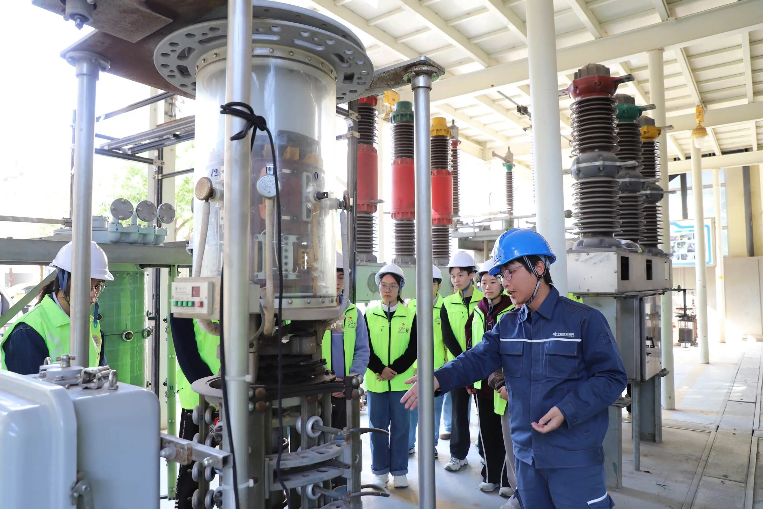 为深入学习贯彻党的二十大精神,引导学生党员把“学思想,强党性,重实践,建新功”落在实处,11月16日下午,kaiyun官网本科生第一党支部(以下简称“本一支部”)在院团委副书记、本一支部书记蒋冬连老师的带领下,赴南宁供电局变电管理二所(以下简称“变电二所”)联合开展“走进企业,了解行业,促进学业”主题党日活动。