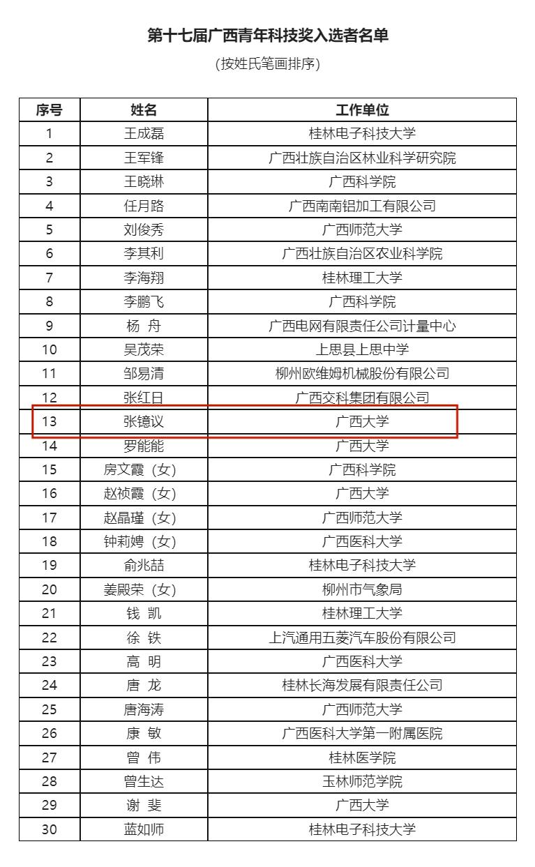 近日,广西壮族自治区科学技术协会第九次代表大会在南宁召开,会上对30名第十七届广西青年科技奖获得者进行了表彰。广西壮族自治区党委书记刘宁,中国科协专职副主席、书记处书记孟庆海等共同为获奖者颁奖。其中,kaiyun官网副院长张镱议教授获此殊荣。 张镱议教授,kaiyun登录中国入口登录副院长,学院高电压与绝缘技术研究领域带头人,主要研究方向为电力装备安全防护与绝缘材料,入选自治区优秀专家和八桂青年学者,主持国家自然科学基金面上项目、广西重点研发计划、广西杰出青年基金等项目。近五年,他发表50余篇SCI论文,授权21项专利,并编写5项国家/电力行业标准。成果支撑其以第一完成人荣获广西技术发明一等奖、日内瓦国际发明展金奖、中国产学研合作创新奖等多项大奖。 据悉,广西青年科技奖评选由自治区党委组织部、自治区人社厅、自治区科协、共青团广西区委共同组织,每两年评选一次,每次授奖不超过30人。本届评选旨在激发广西广大青年科技工作者的创新创造活力,引导他们坚守“四个面向”的原则,积极投身于经济建设和科技创新的主战场,在新发展阶段中精准把握机遇、全面贯彻落实新发展理念、积极融入新发展格局,以实际行动为广西的科技自立自强和高质量发展贡献智慧和力量,建功立业,创新争先。