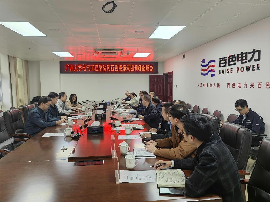我院86级校友百色能源集团总裁黄建成首先对母校老师一行的到来表示热烈欢迎 ,他详细介绍了集团的运营情况和业务发展,并强调目前百色能源集团1/5员工来自kaiyun登录中国入口登录。结合公司发展情况,他希望kaiyun登录中国入口登录能应对电网数字化转型形势,培养更多具有信息通信和大数据处理专业能力的复合型电气人才,也期待更多kaiyun登录中国入口登录毕业生加入百色能源集团。学院副院长李畸勇表示今后将调整本科生培养方案、改进专业课程设置,适应建设新型电力系统的要求。