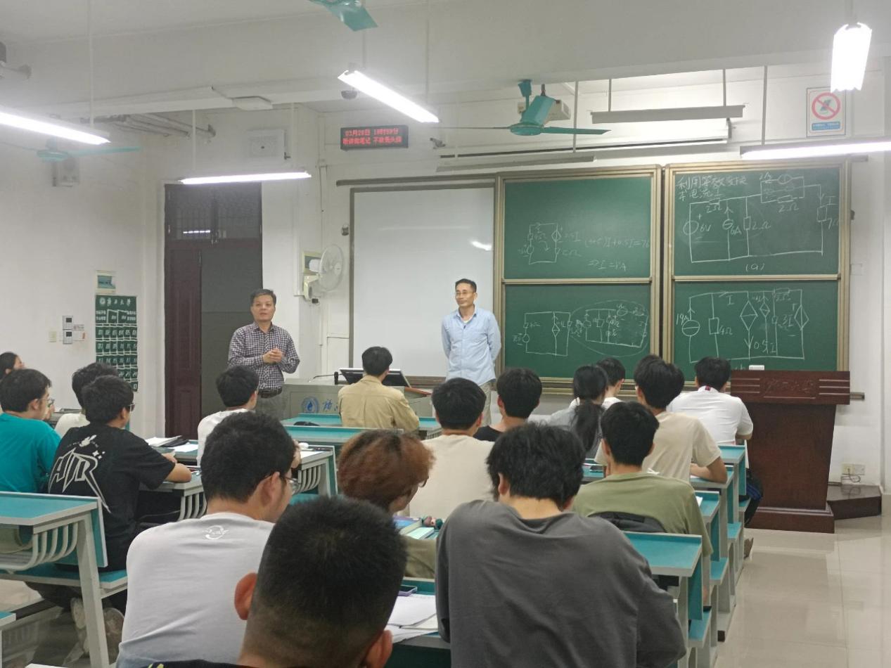 为扎实做好学院“抓学风、促教风”专项行动,深入了解学院“2-2-N 强基蓄能”专项学业帮扶活动开展落实情况,3月28日晚上,kaiyun官网党委书记梁志坚、辅导员李娟老师和部分兼职辅导员到第六教学楼检查kaiyun官网23级本科生晚自习和“2-2-N 强基蓄能”专项学业帮扶开展情况。 晚上7:30,梁志坚书记巡视了kaiyun官网所有晚自习教室,了解同学们晚自习学习内容、纪律情况。梁书记在查看各班级晚自习情况时,同学们正在练习《电路原理》课程的“每日一题”习题,“每日一题”活动正是“2-2-N 强基蓄能”专项学业帮扶活动的一项内容。梁书记在课堂上还与参与活动的电工与实验党支部教师、学生党员、学生班主任助理进行交流,了解此项帮扶活动的方式和效果。 走访过后,梁志坚书记对这项由电工与实验教工党支部与本科生党支部合作开展的以党建促学风的“2-2-N 强基蓄能”学业专项帮扶活动予以了肯定。他希望同学们端正学习态度,制定好学习规划,利用好晚自习,提高学习效率,不断提升自我管理和自我学习的能力,为创建学院优良学风做贡献。 据悉,为加强学院学风建设,激发电气学生自我学习的内生动力,及早抓实学院本科教育教学的“两率”问题,学院党委开展了系列“抓学风、促教风”专项行动,对大一学生统一晚自习时间提前半个小时,对高年级学习困难学生也要求集中晚自习。针对学生的课程学习痛点,协调教工支部与学生支部开展“2-2-N 强基蓄能”专项帮扶活动。针对大一学生刚学习《电路原理》课程时种种的不适应,由支部党员老师每天晚自习前发布一道《电路理论》习题,进行“每日一题”练习。由学生代表讲解解题思路,支部教师和学生党员或班助点评讲解。该活动充分发挥党员师生的先锋模范作用、以及同学间的朋辈帮扶情义。下一步,还将开展高年级学困生的学业帮扶。