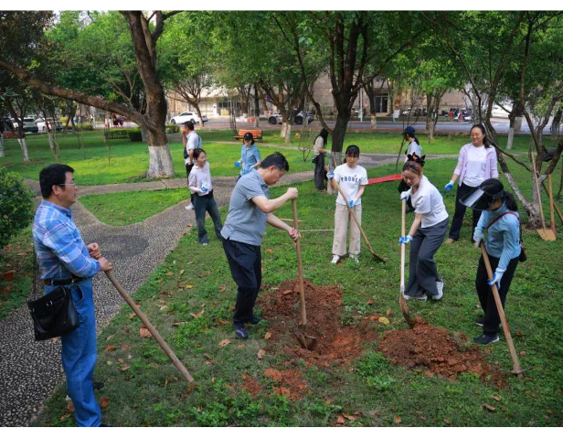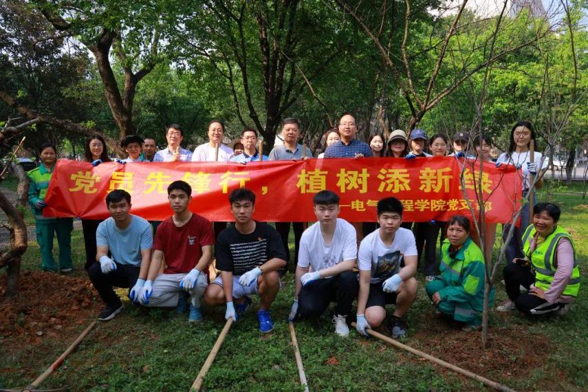 为深入学习贯彻习近平生态文明思想,以实际行动践行“绿水青山就是金山银山”的发展理念,3月29日上午,kaiyun登录中国入口登录管理党支部、电工与实验党支部、本科生第三党支部联合开展义务植树活动。学院党委书记梁志坚、党委副书记李道洋、副院长于婷、副院长李畸勇和师生党员代表参加活动。 活动现场,大家热情高涨、干劲十足,三五成队,采用分工合作的方式,挥锹挖坑、铲土拔草、扶苗填土、夯土浇水,呈现热火朝天的辛勤劳作景象。 经过大家共同努力,树木扎根在沃土里,迎风挺立,“党旗‘红’”和“生态‘绿’”交相辉映,成为春日校园里一道亮丽的风景线。 此次义务植树主题党日活动展示了电气人良好的精神风貌,进一步提高了师生党员的生态环保意识。大家纷纷表示,将继续发挥先锋模范作用,积极参与生态文明建设,用自身行动践行绿色发展理念。