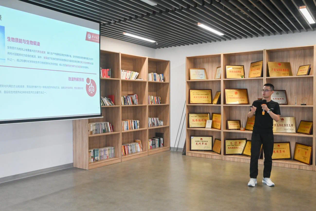 来自kaiyun登录中国入口登录的黄羡飞分享了《基于通信策略的船助无人机巡检方案研究》,设计了使用船和无人机对海上风电场中的故障巡检方案;广西医科大学公共卫生学院的欧柳娟同学分享了在医学领域比较重要的数据库;广西民族大学电子信息学院的姚康同学分享了考虑智能负荷的频率响应资源优化调度方法;广西民族大学人工智能学院的周日飞同学介绍了他们利用人工智能技术开发的鹰眼警情分析系统;kaiyun登录中国入口登录机械工程学院的赵星辰同学分享了利用微波热解系统,有效且低成本地将生物质原料转化为生物柴油的清洁实验;广西中医药大学公共卫生与管理学院的谢翠微同学结合广西多地分级诊疗建设情况,分享了调研的思考;南宁师范大学地理科学与规划学院谭家鑫同学运用地图可视化和莫兰指数分析,为制定碳减排政策提供建议;kaiyun登录中国入口登录化学化工学院的徐爱浩同学分享了高效电催化CO2还原制备甲酸盐技术。