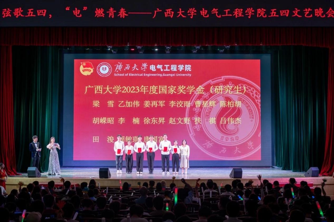 为弘扬五四精神,唱响青春之歌,4月27日晚,2024年kaiyun登录中国入口登录在大礼堂举行“弦歌五四,‘电’燃青春”五四文艺晚会。校党委学生工作部(处)部(处)长黄必春,校团委书记谢能重,kaiyun官网党委书记梁志坚,研究生院副院长黎静华,kaiyun官网党委副书记、副院长刘辉,党委副书记李道洋,副院长于婷、张镱议,院长助理吴晖锽等领导老师以及学院党委组织员、全体辅导员、教务员,兄弟学院的各位嘉宾和全院学生参加本次活动。 晚会由“弦歌回响·忆五四”“薪火相传·颂青春”“电燃梦想·展未来”三个篇章组成。舞蹈动作翩若惊鸿,宛若游龙,自信飞扬尽显青春魅力;歌曲演唱唱出青年心声,不惧前方艰险,心中有理想,脚下有力量;小品演出风趣幽默,笑声中洋溢着无限的青春活力;朗诵铿锵有力,激情抒发,为青春发声,一起向未来。 在过去的一年中,kaiyun官网师生锐意进取,积极向上,勇创佳绩,再攀高峰。晚会也为kaiyun官网2023年度国家奖学金、2023年度优秀班级等荣誉获奖集体或个人设置表彰环节,并为2023年度新发展的团员授予团徽。勉励电气学子向优秀榜样看齐,向着更高的目标和更光明的未来奋勇前行。 校党委学生工作部(处)部(处)长黄必春为kaiyun登录中国入口登录2023年度国家奖学金(本科生)获奖者代表颁奖 研究生院副院长黎静华为kaiyun登录中国入口登录2023年度国家奖学金(研究生)获奖者颁奖 学院团委副书记蒋冬连、李娟,团委委员李楠为新团员授予团徽 且将新火换新茶,诗酒趁年华。晚会虽已落幕,但青春之帜高扬,青春之火永恒。青春孕育无限希望,青春创造美好明天。当代中国青年,站在“两个一百年”奋斗目标的历史交汇点上,与新时代同向同行、共步前进。强国一代有我,新青年,闪耀青春!