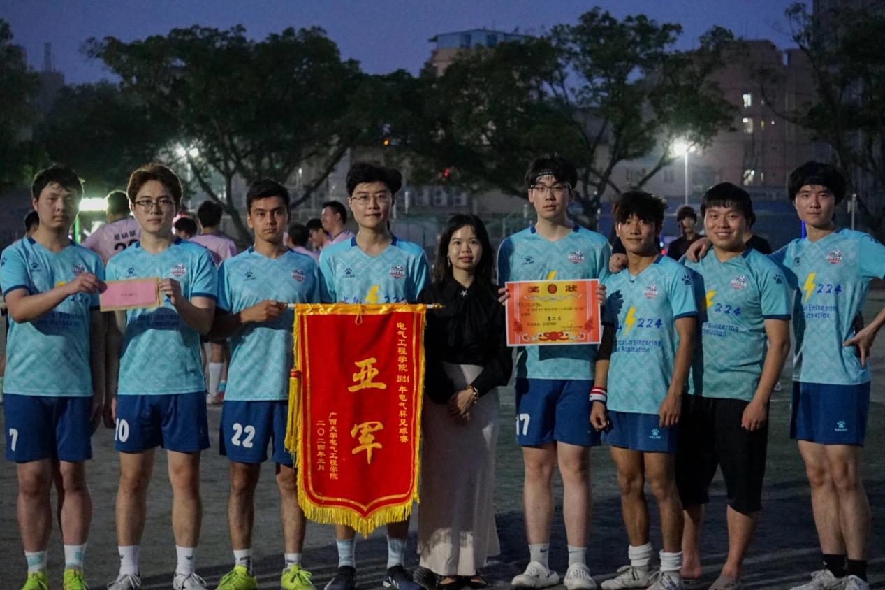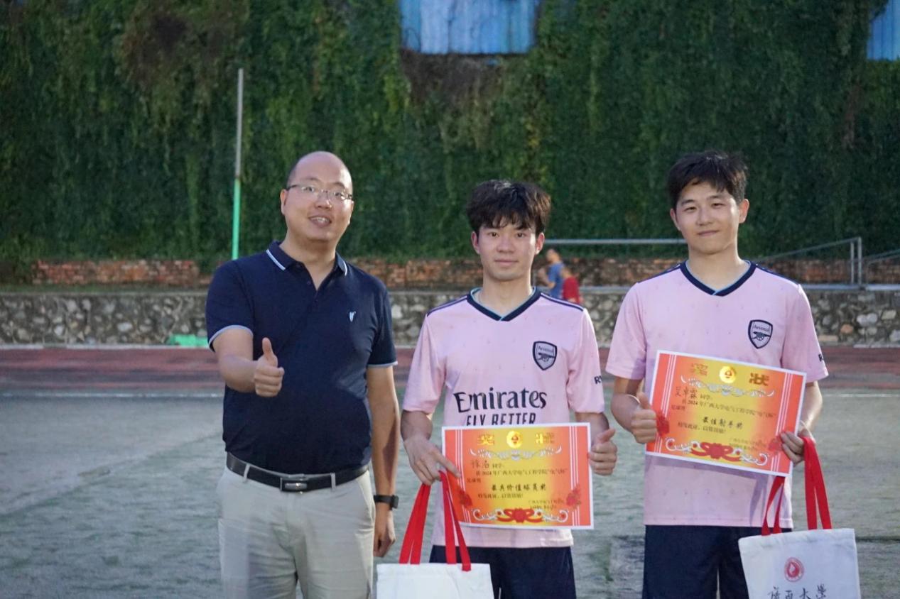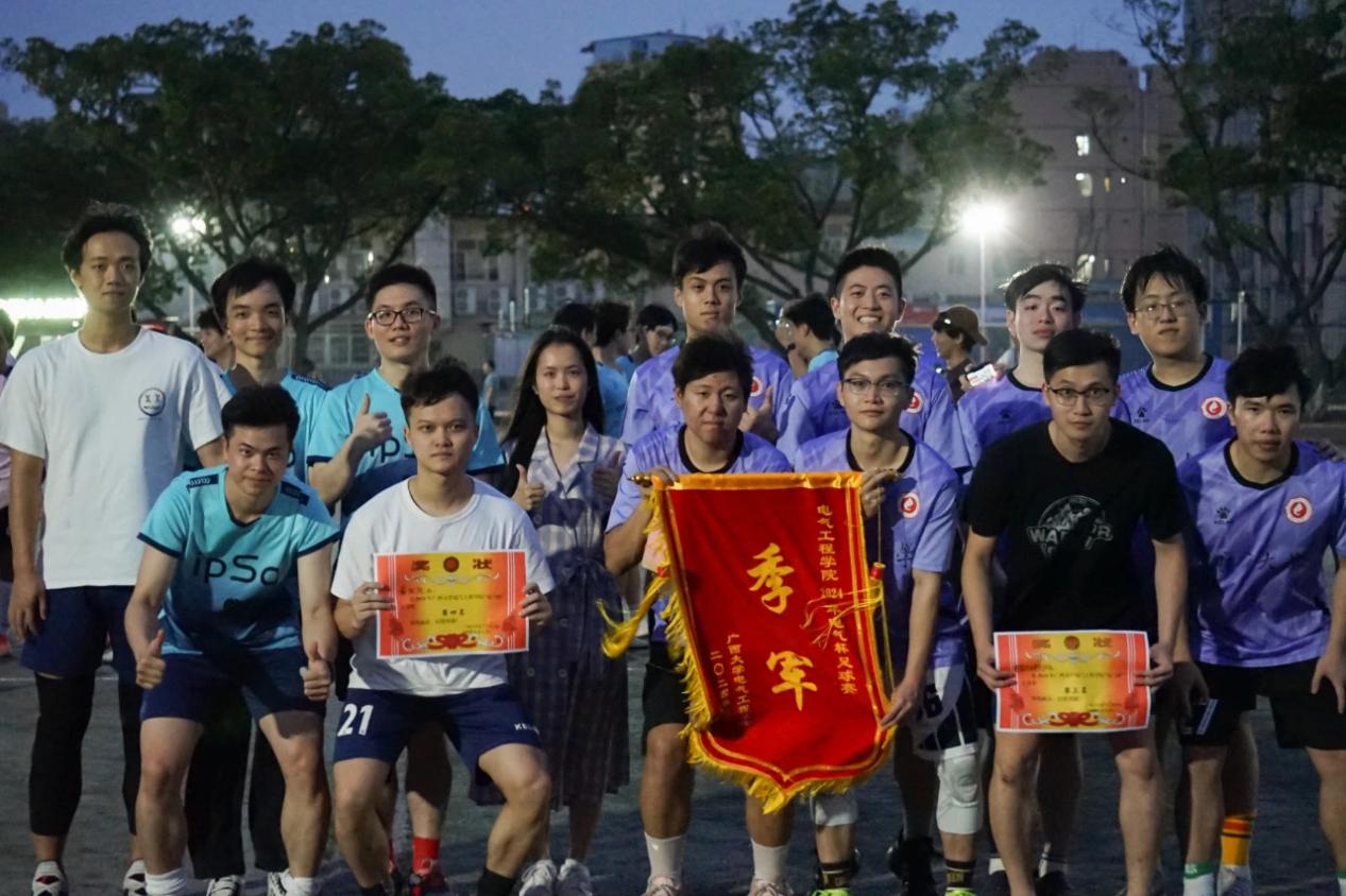 5月17日下午,kaiyun官网“电气杯”足球赛总决赛和季军争夺赛同时在东校园体育场开赛,学院党委书记梁志坚、党委副书记李道洋,辅导员李楠、李浩铭、何惠榕、冯敏到现场观赛并为参赛队伍加油助威。 春夏交际,场上稍有炎热,跑动起来凉风阵阵,正是电气学院运动健儿们驰骋绿茵场的大好时机。本次“电气杯”足球比赛包括教职工队在内,总共12支队伍,113人参赛。东校园体育场上,星研联队与电气221和224班联队上演冠军争夺战,电自216和电创211班联队与最优化队展开季军角逐战。 “运筹帷幄,决胜千里”是双方队员开赛前的博弈,根据各自的情况和对对手的了解,各队都制定了详尽的战略部署。在队员们严密配合、进攻和防守中,比赛精彩片段频出,令观众目不暇接。 双方比分始终咬紧,赛况紧张激烈。最终随着哨声响起,比赛结果尘埃落定,而运动员们的矫健身影,给观众留下了深刻印象,成为一种激励人奋进拼搏的精神动力。 狭路相逢勇者胜,本次强强对决中,凭借高超的水平和沉着冷静的定力,星研联队荣获冠军,电气221和224班联队惜败荣获亚军,电自216和电创211班联队荣获季军! 冠军 李道洋副书记为冠军星研联队颁奖 亚军 李楠老师为亚军电气221和224班联队颁奖 季军 冯敏老师为季军电自216和电创211班联队、第四名最优化队颁奖 李道洋副书记为最佳射手吴卓霖(右一) 最具价值球员徐浩(中间)颁奖 夏天来临的五月,正是青春跃动的时节,少年的每一次冲刺,每一脚射门,就像一株新发的萌芽破土而出、一次对人生高峰的勇于攀登。不论结果如何,这群奋进的电气学子,定会在今后的人生长河中,如这个夏天一般一次次勇往直前,踢出属于自己的盛夏。 合影留念