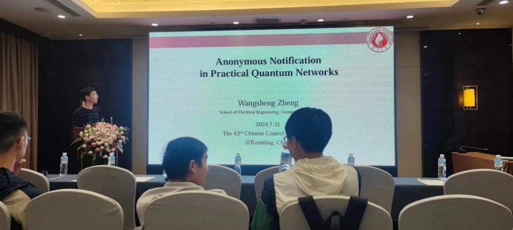 第43届中国控制会议(The 43rd Chinese Control Conference, CCC2024)于2024年7月28-31日在云南省昆明市举行,kaiyun官网2022级硕士生郑王升同学在kaiyun登录中国入口登录2024年研究生素质能力提升项目资助下参加本次会议并作口头报告。 图1 会议现场 郑王升同学作为"Quantum Engineering"专题的第一个汇报者对其参会论文"Anonymous Notification in Practical Quantum Networks"进行了口头汇报。该论文提出了一种基于GHZ态的量子匿名通知协议,在实际量子网络中存在的噪声和敌手模型下证明了所提协议的匿名性,并通过在实际芯片上的运行结果展示了所提协议的优越性。在论文分享之后,他还与参会的专家学者就网络结构、理论推导过程和协议的实验结果等问题进行了交流讨论。 据悉,中国控制会议是由中国自动化学会控制理论专业委员会发起的系列学术年会,旨在为系统控制领域的专家、学者、工程技术人员及研究生提供一个学术交流的机会,以推动系统控制科学的学科发展和控制技术的实际应用。本届会议共收到来自18个国家和地区的投稿论文2102篇,其中766篇论文被安排在22个分会场进行口头报告和交流。 图2 郑王升同学作口头报告 郑王升同学表示,他非常感谢学院研究生素质能力提升项目提供的机会,使他得以与各地学者交流,了解最新的研究动态和前沿知识。他特别提到,论文的顺利完成离不开导师龚贝利老师在科研工作各个环节中的指导与支持。参加这次会议对他来说是一次宝贵的经历,有助他开拓科研视野,并锻炼自己的学术表达和交流能力。