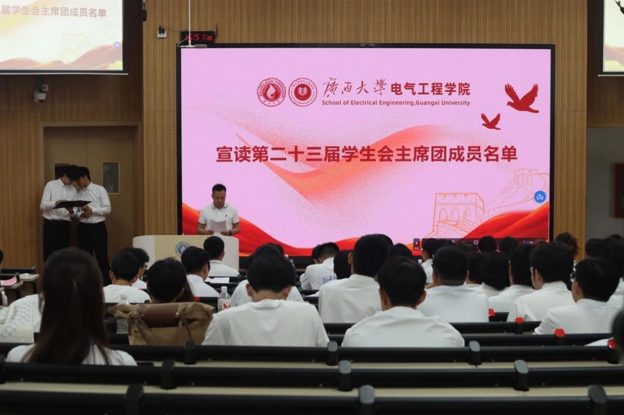 主持人刘家成同学宣读第二十三次学生代表大会常任代表当选名单,同时宣读学院第五届众创空间、第四届学生新媒体中心、第一届党建工作中心及kaiyun登录中国入口登录就业与职业发展协会电气分会第十八届干部名单。