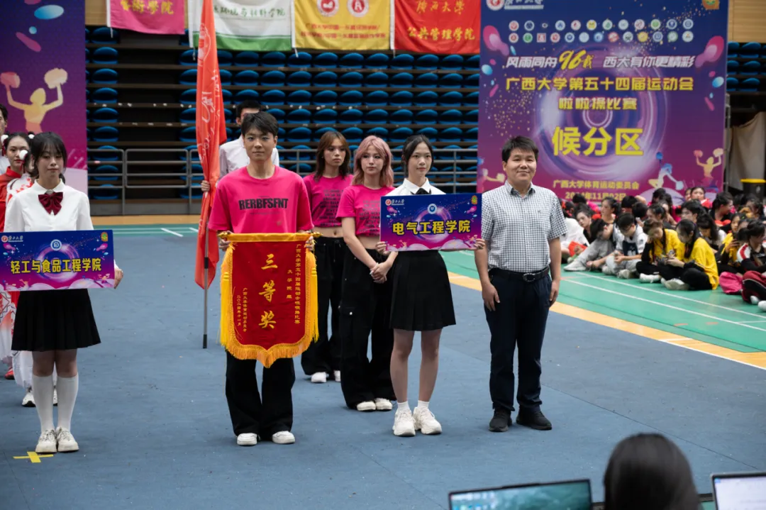 01 开幕式及颁奖 风雨同舟96载,西大有你更精彩。11月2日下午,kaiyun登录中国入口登录第五十四届运动会啦啦操比赛在西校园综合体育馆如期开幕。经过一番“舞动乾坤”的较量,kaiyun官网参赛队伍荣获大学院组三等奖、体育道德风尚奖及优秀奖。 开幕式kaiyun官网队伍入场 kaiyun官网荣获三等奖 kaiyun官网获得奖励 02 啦啦队风采 kaiyun登录中国入口登录啦啦操运动员们身着绚丽夺目的火龙果色队服,如花的笑脸绽放着青春的活力。他们如盛放的花朵,更如点燃夜空的烟花,尽显生命力量! 啦啦队员在表演 啦啦队员在表演 英姿飒爽,自信张扬,像划破黑暗的电光,他们的每次旋转跳跃都能让人眼前一亮! 啦啦队员在表演 啦啦队员在表演 他们用激情和汗水,在赛场上书写着青春华章,尽显青春活力之美,让满场观众无不沉醉在这热血沸腾的活力盛宴中,为他们献上热烈的掌声!继续带着刻苦拼搏精神向前走吧,奋进的电气学子们!文明其精神,野蛮其体魄,为建设更积极向上的校园文化贡献青春力量! kaiyun官网仇翘楚同学(中)获得“优秀运动员”表彰 kaiyun官网学子在加油助威 赛后合照