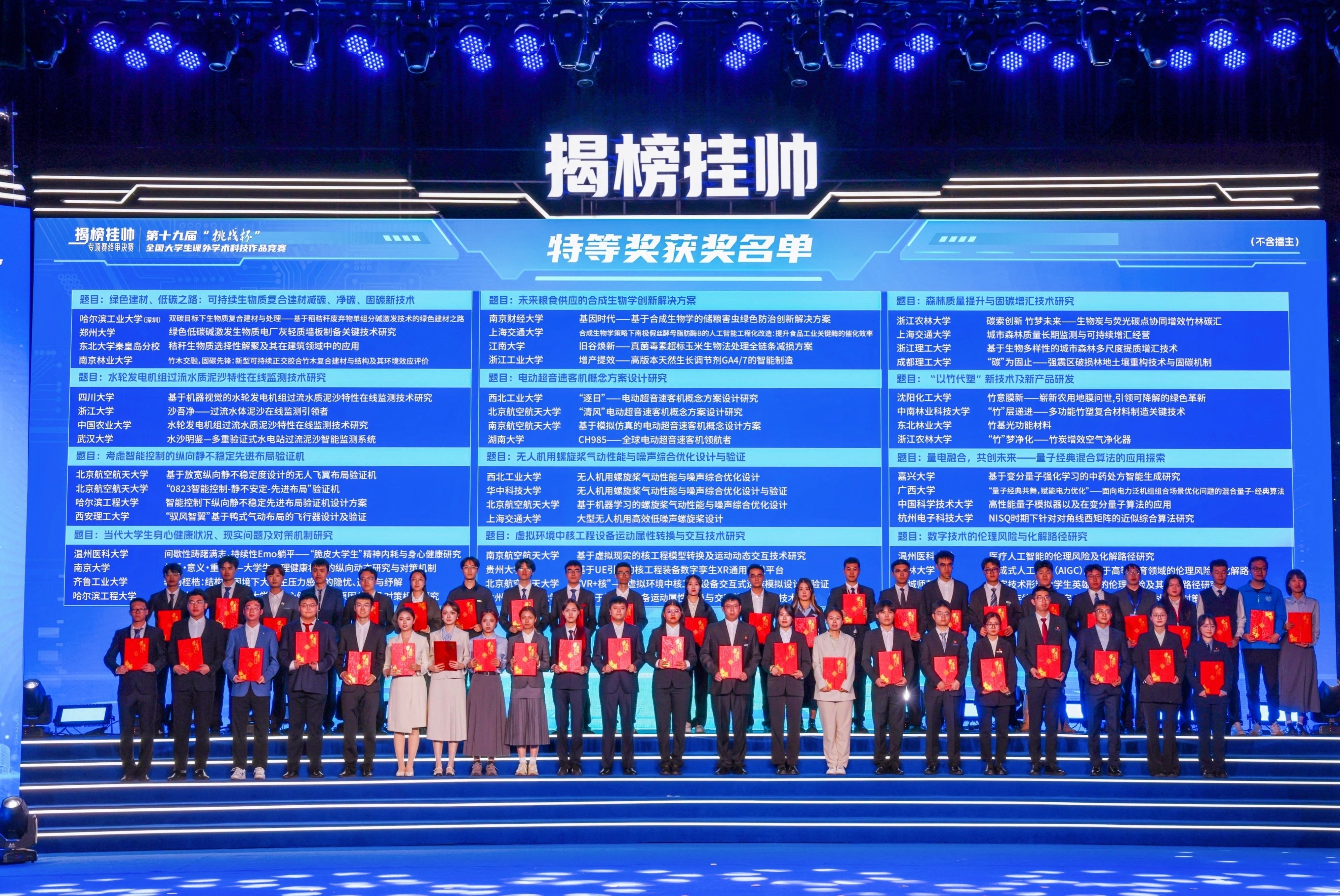 据悉,“挑战杯”全国大学生课外学术科技作品竞赛是由共青团中央、中国科协、教育部、中国社科院、全国学联和承办地省级人民政府共同主办的一项具有导向性、示范性和群众性的竞赛活动,被誉为当代大学生科技创新的“奥林匹克”盛会。其中“揭榜挂帅”专项赛聚焦“卡脖子”技术,瞄准社会重大课题及现实问题,以“政企发榜、竞争揭榜、开榜签约”的方式,通过“征榜—发榜—竞榜—评榜—夺榜”,由政府、企业等单位按需求出题,组委会面向高校和社会广发“英雄帖”,高校学生团队和青年科技人才团队打擂揭榜,教育引导广大青年面向国家重大需求,踊跃投身科研攻关第一线。