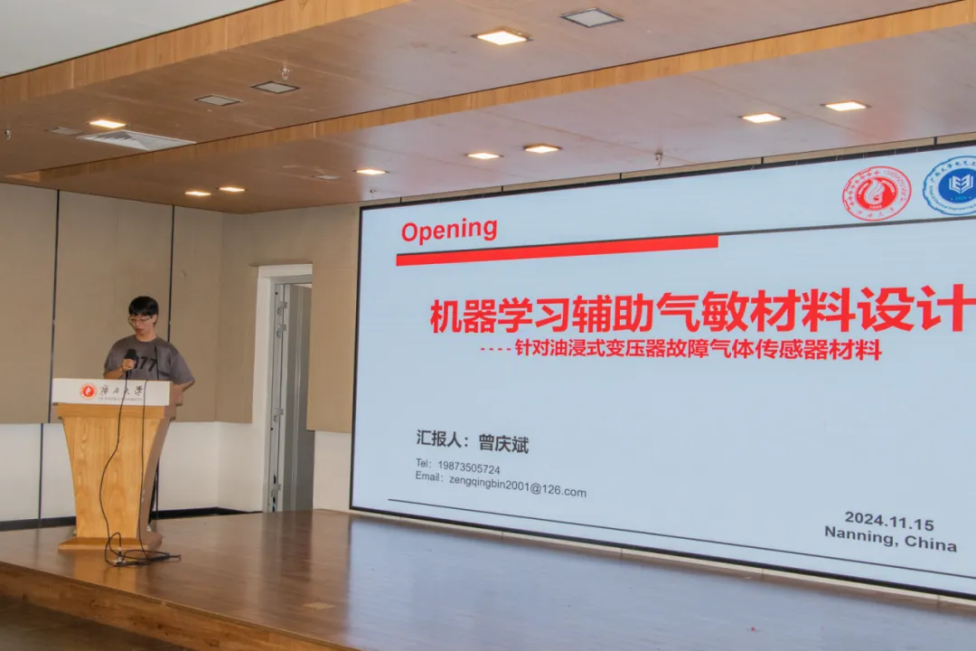 控制工程研233班的曾庆斌同学介绍了机器学习在气敏材料设计领域的应用。针对油浸式变压器故障气体的气敏材料的设计问题,他们团队使用机器学习方法进行辅助,以重金属二硫化物材料作为研究对象,通过10种机器学习模型进行训练,筛选出3个效果最佳的模型,成功预测和筛选出符合要求的新材料,并且在分析过程中引入了新的变量,为传感器材料的开发提供了新思路。