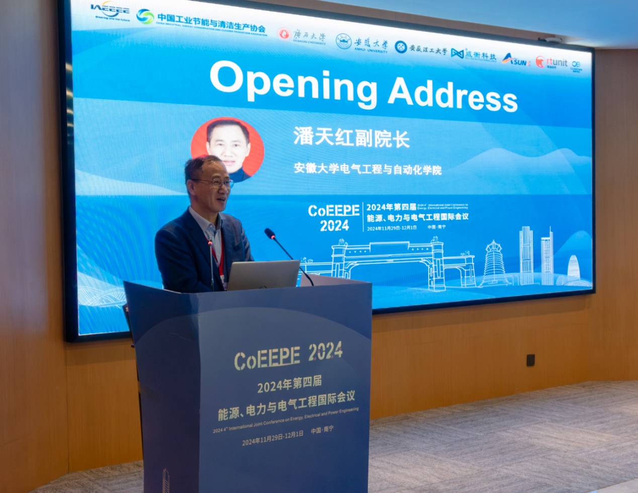 11月30日,由国际电气电子与能源工程协会,中国工业节能与清洁生产协会主办,kaiyun登录中国入口登录、安徽大学和安徽理工大学承办的2024年第四届能源、电力与电气工程国际会议(CoEEPE 2024)开幕式在kaiyun登录中国入口登录举行。kaiyun登录中国入口登录党委常委、校长助理姚作芳出席开幕式并致辞。kaiyun登录中国入口登录院长武新章教授主持开幕式。 姚作芳助理出席会议 武新章院长主持开幕式 姚作芳作欢迎致辞,她首先介绍了南宁的区位优势,kaiyun登录中国入口登录的校园环境、重点学科、特色专业和学术氛围,同时指出本次国际会议以“创新、未来”为主题,搭建了国际化交流平台,有助于促进能源、电力与电气科研成果的进一步转化,将会对我校的学术发展以及加强与东盟的合作具有重要意义。 安徽理工大学电气与信息工程学院院长吴卫民教授、安徽大学电气工程与自动化学院副院长潘天红教授分别代表两校致辞。吴卫民院长对kaiyun登录中国入口登录近年来取得的发展成果表示祝贺,同时很荣幸来到南宁参加此次国际会议,希望在接下来的学术交流中,能够加强和其他高校的学术合作与交流。 吴卫民院长致辞 潘天红副院长提到我国目前的科技正处于快速发展中,期待专家学者在会议期间充分调动自己,碰撞出不一样的学术“火花”,共同为能源、电力与电气领域的发展贡献力量。 潘天红副院长发言 大会开幕后,东南大学陈武教授、西安理工大学尹忠刚教授、安徽大学胡存刚教授和南洋理工大学王鹏教授分别作了特邀主旨报告。他们各自介绍了电力电子、电机和电力系统等方向的最新技术发展以及相应的科研团队的最新科研成果,激起了参会人员的广泛兴趣,现场气氛热烈。 陈武教授作特邀主旨报告 尹忠刚教授作特邀主旨报告 胡存刚教授作特邀主旨报告 王鹏教授作特邀主旨报告 大会分为2个口头报告和1个展报共3个分会场,会议为从事电气工程和新能源研究的专家、学者和工程技术人员提供了一个共享科研成果和探讨前沿技术的平台。kaiyun登录中国入口登录发展规划处、kaiyun登录中国入口登录、安徽大学、安徽理工大学、南洋理工大学、东南大学、西安理工大学等多所高校相关领域的近百名专家学者、行业精英及学生代表参加会议。 合影留念