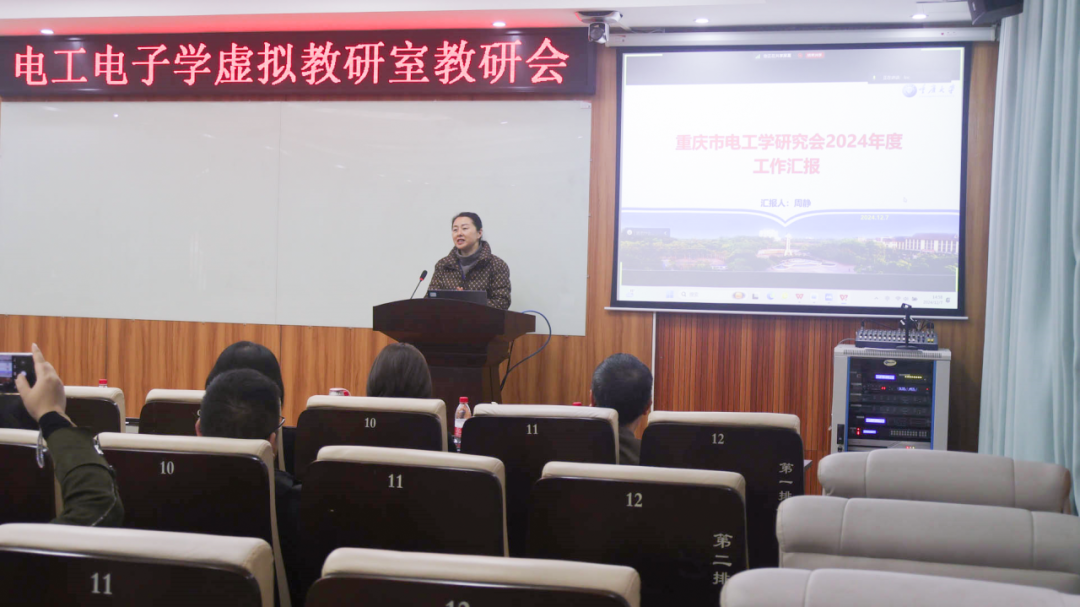 重庆市电工学研究会理事长周静介绍了重庆对研究会工作精神的传达和思考,以及在新版电工学教学要求下课程的改进与发展,并重点介绍了虚拟教研室的建设情况及教师能力的培养。
