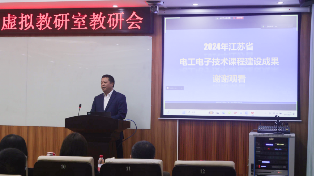 江苏省电工学研究会理事长王勤分别介绍了教材、课程建设方面的成果以及未来规划,着重强调了元器件国产化以及电工教育融入高中的愿景。