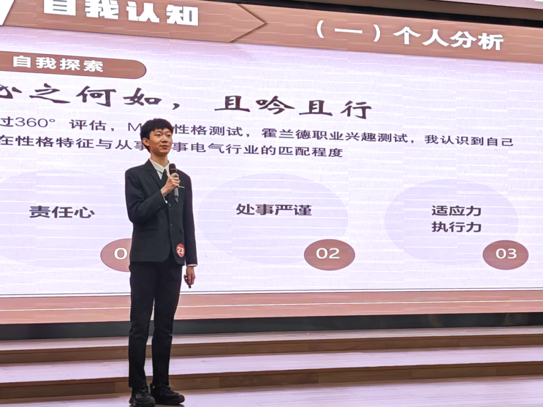 决赛舞台上,kaiyun官网选手围绕自我认知、职业探索、目标规划、实践积累、反思提升等要点,结合鲜活案例,深入剖析个人职业路径,生动展现出青春力量融入强国征程的担当与豪情,诠释着对职业规划的深刻洞察。答辩环节,选手们面对评委的提问,从容应对,阐述创新职业理念与可行方案,分享逐梦路上的拼搏点滴,赢得评委和观众的肯定。