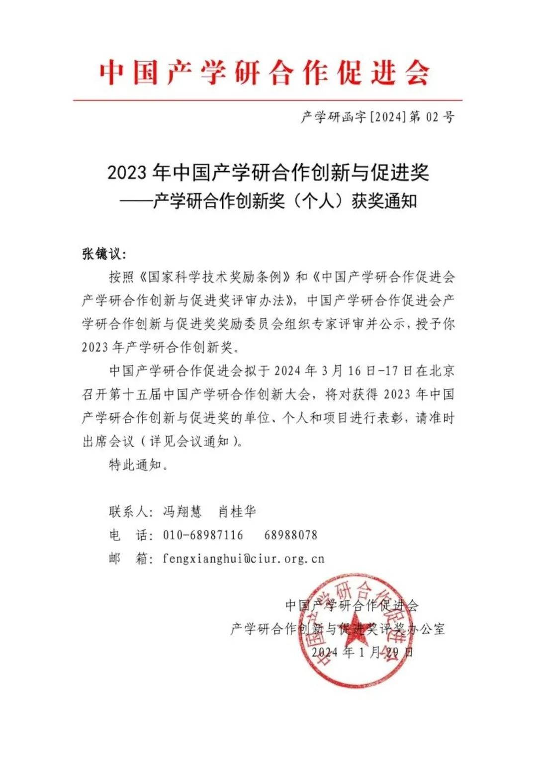 kaiyun官网张镱议教授荣获2023年中国产学研合作创新奖(个人),同时荣获第十七届广西青年科技奖。