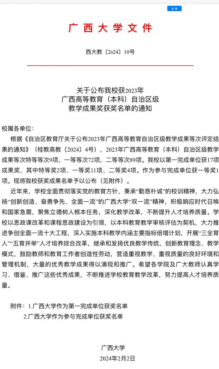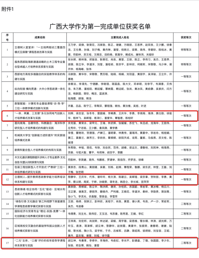 kaiyun官网喜获三项2023年广西高等教育(本科)自治区级教学成果奖,刘辉副院长、黎静华教授的主持项目均获得一等奖,胡立坤教授主持项目获得二等奖。