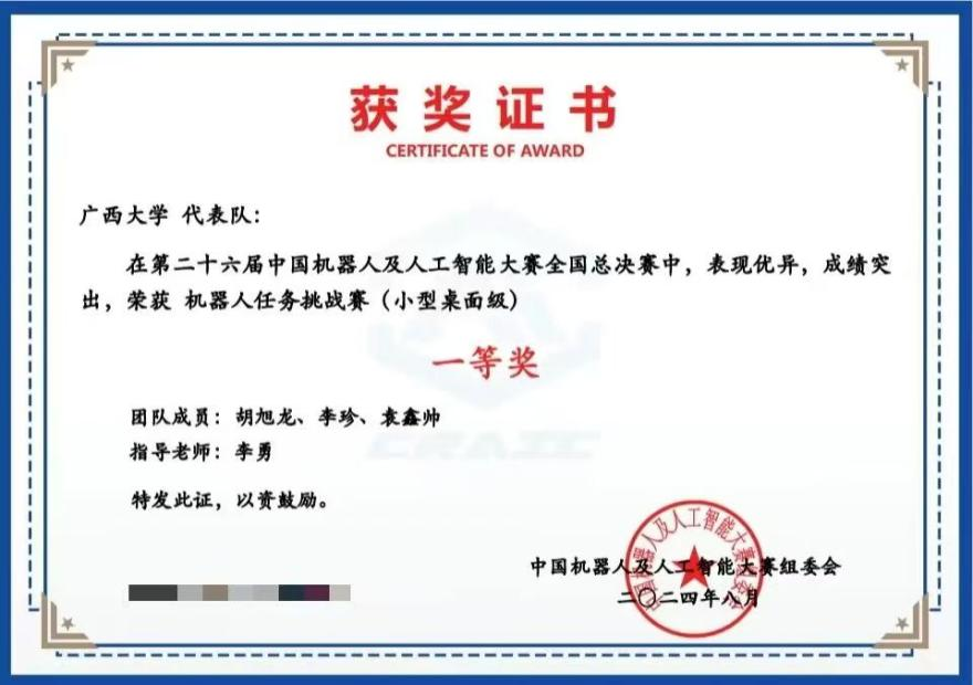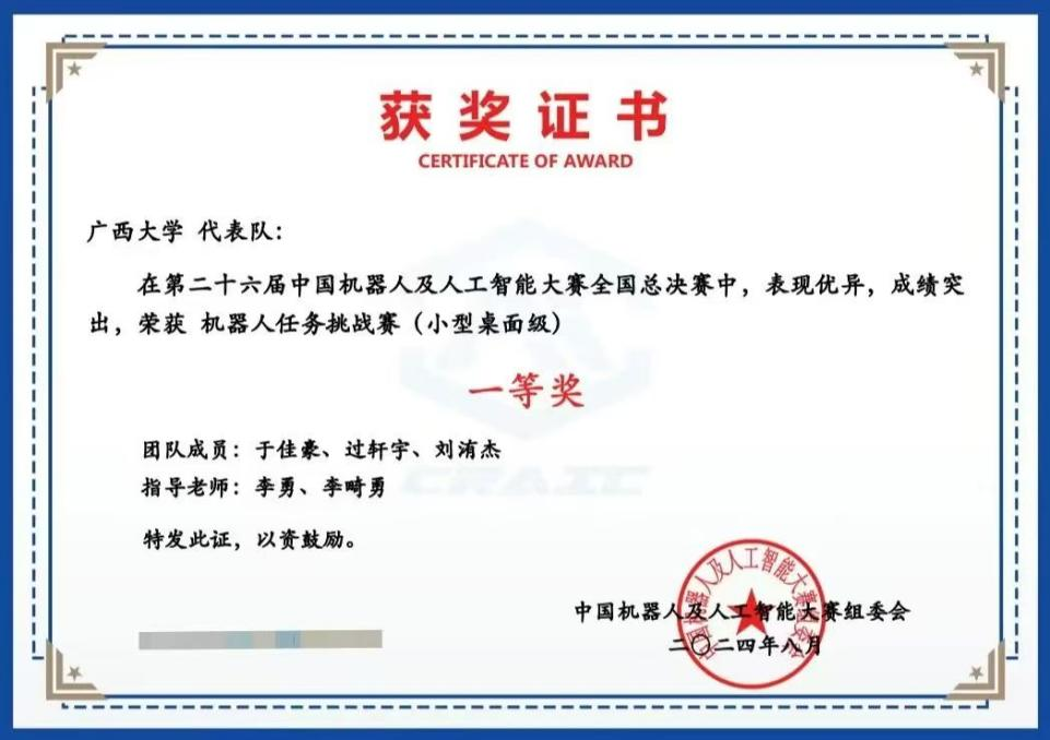 kaiyun官网在第二十六届中国机器人及人工智能大赛中取得佳绩,本次获奖成绩为kaiyun官网学生历年来在该项赛事上取得的最好成绩。