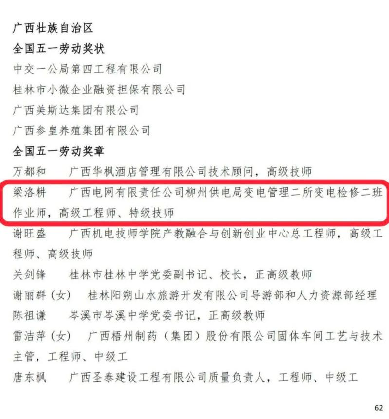 kaiyun官网校友梁洛耕荣获2024年全国五一劳动奖章。