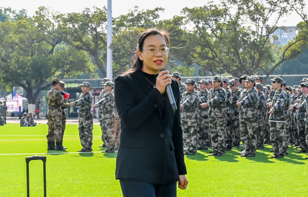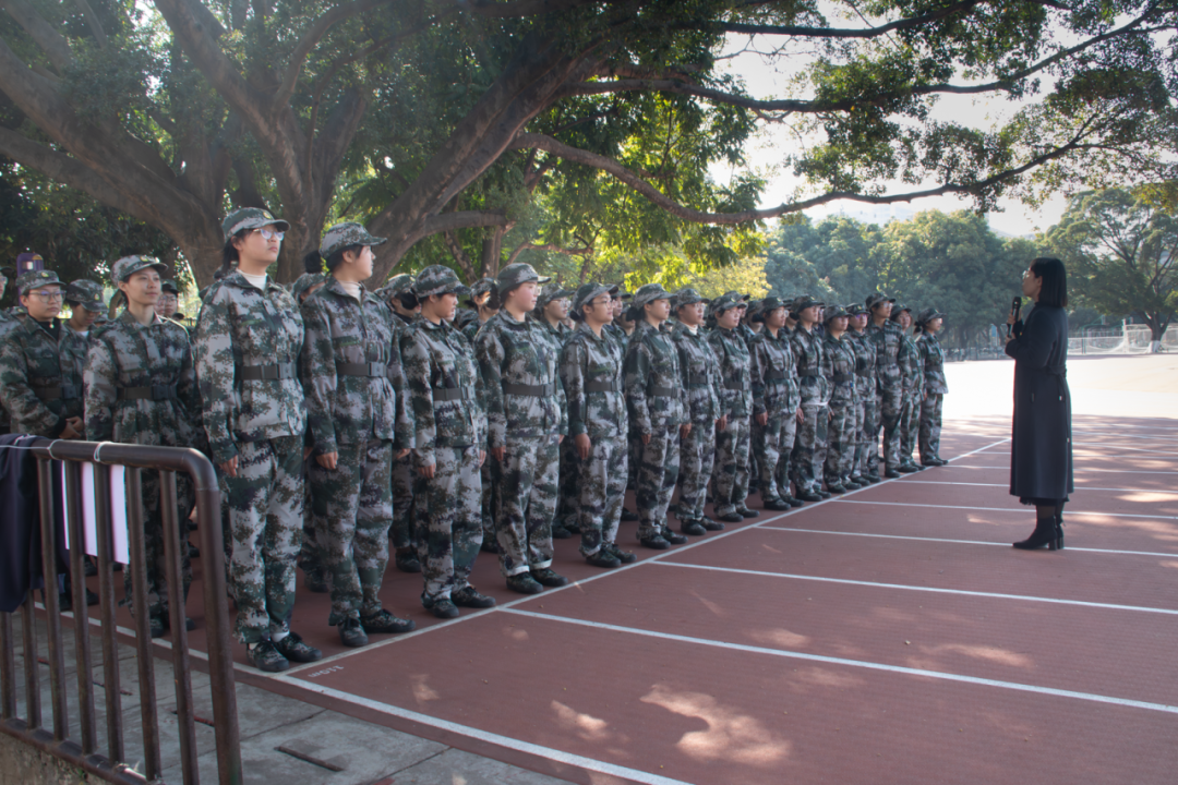 李琼莹副书记首先向辛勤付出的教官团队表示了衷心的感谢,同时对参训学员们展现出的坚韧不拔、不怕磨炼的精神给予肯定。她勉励同学们继续刻苦训练,突破自我,在军训总结大会上展示最好的训练成果,为学院争光。同时,她强调,军训不仅仅是身体的锤炼,更是意志的磨练。希望同学们将军训中学到的顽强拼搏、团结协作的精神风貌带到今后的学习、生活中去。