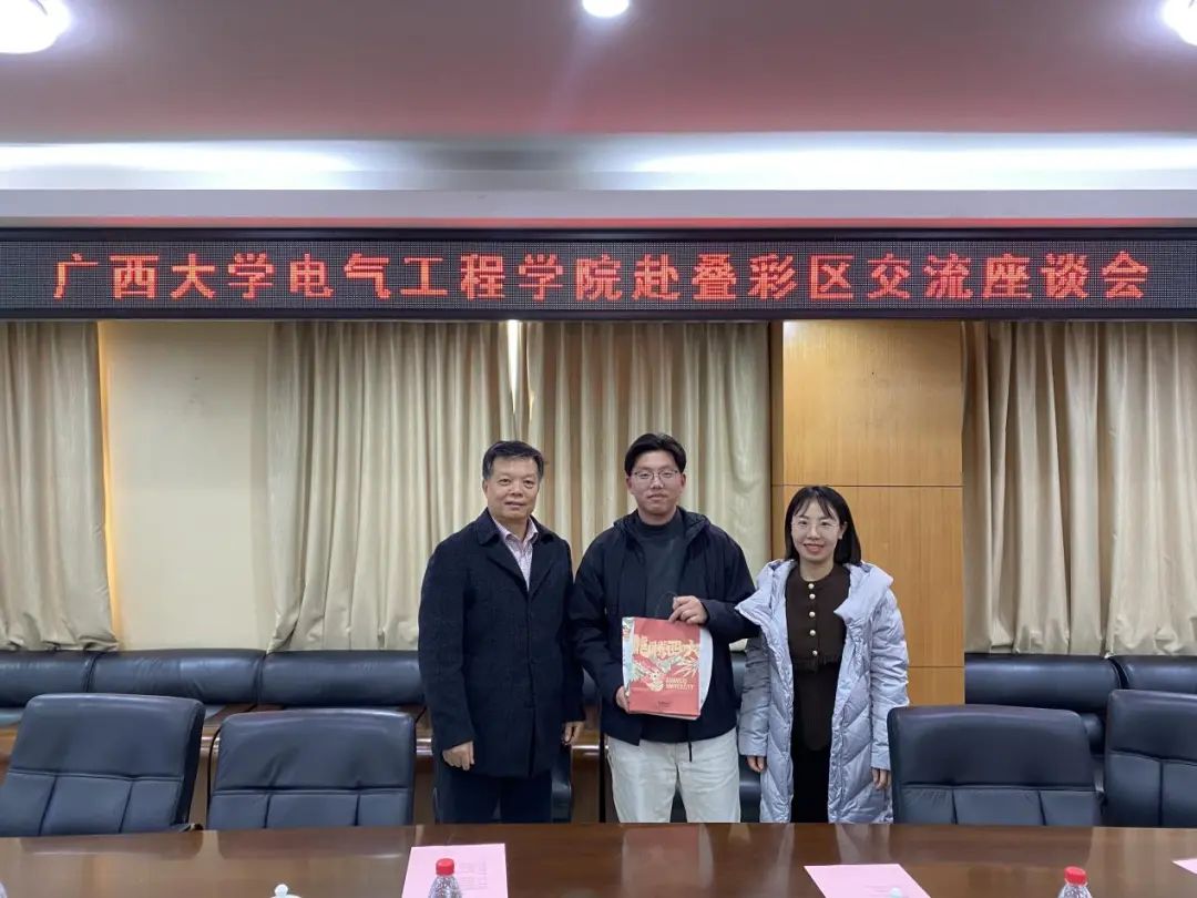 1月15日下午,梁志坚书记一行拜访了中共桂林市叠彩区委员会组织部,走访了kaiyun官网2023届定向选调生校友徐大也。叠彩区委领导介绍了我校定向选调生在岗表现情况,同时对徐大也的工作表现给予了肯定。徐大也校友是kaiyun官网2020级电子信息专业研究生,他分享了在基层工作的所见所闻和心得体会,对学院领导老师的关心表示感谢,同时也表达了为地方经济社会发展贡献力量的决心。