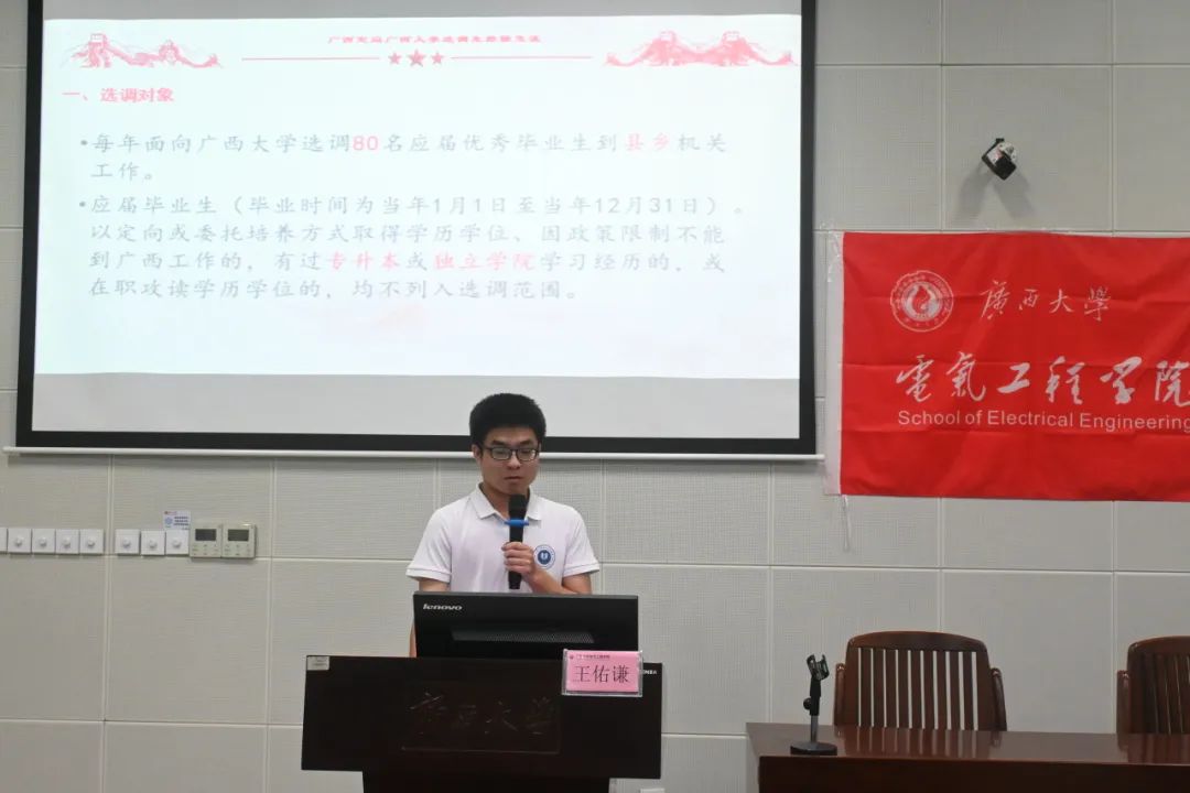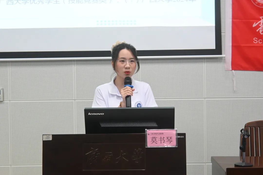 曾任两届研究生会主席团成员,现签约南宁供电局的莫书琴同学结合自身丰富的学生工作经历和求职实战经验,鼓励同学们积极参加学校的学生工作,锻炼自身综合能力,并分享了就业准备要点以及笔试、面试中的实用技巧。