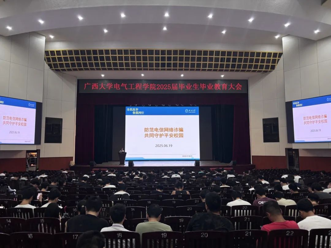 为做好学院2025届毕业生毕业教育与离校相关工作,增强毕业生爱校荣校、诚信感恩、反诈防诈、廉洁从业意识,6月19日下午,kaiyun官网在大礼堂举行2025届毕业生毕业离校教育大会。kaiyun官网党委副书记李琼莹,团委书记蒋冬连,团委副书记李娟、冯敏,辅导员何惠榕出席会议,kaiyun官网2025届全体毕业生参加会议。 会议现场 李琼莹副书记 会议伊始,李琼莹副书记以“常充廉洁电,远离高压线”为题,为全体毕业生作了一场深刻的廉洁从业教育讲座。她首先引用习近平总书记的讲话,提醒同学们:“一个人廉洁自律不过关,做人就没有骨气”,强调要扣好廉洁从业的“第一粒扣子”。随后,李副书记结合大量警示案例,提醒大家在步入职场后,要始终守住底线,不可在权力与物欲面前迷失方向。 她指出,电力行业作为国家能源体系的重要支柱,其内部多个环节可能成为腐败滋生的“高压区”。对此,她郑重告诫同学们:技术可以点亮万家灯火,但若心中失去了廉洁之灯,终将走入黑暗。 接着,冯敏老师以“防范电信网络诈骗,共同守护平安校园”为题开展反诈教育。她首先介绍了电信诈骗以及校园高发诈骗的类型;随后讲解了一系列防范常识,告诫同学们要牢记“十个凡是”,做到“四要”和“四不要”;最后阐述了“断卡”行动的含义和重要性。 冯敏老师 随后,何惠榕老师详细讲解了毕业生个人人事档案归档及迁移的注意事项,包括本科生、研究生的材料归档范围,以及档案材料的移交、转寄、核验流程等;同时对党员组织关系的转移相关事项逐一说明。 何惠榕老师 接着,李娟老师就毕业离校手续等相关事项的办理流程、偿还助学贷款的相关注意事项、团组织关系的转移注意事项等内容进行了细致的说明,希望毕业生做到“文明离校,快乐启程”。她提到,毕业是新的开始,是人生的下一站新征程,祝愿各位毕业生前程似锦。 李娟老师 最后,蒋冬连老师与全体毕业生共同观看《2025年安全生产月安全生产警钟长鸣》警示教育片,蒋老师希望人人讲安全,个个会应急,提醒大家及时排查身边的安全隐患,让“安全生产,警钟长鸣”的理念深植于心、贯穿于行。同时,蒋老师就毕业生们提出的问题,一一进行了解答。 蒋冬连老师