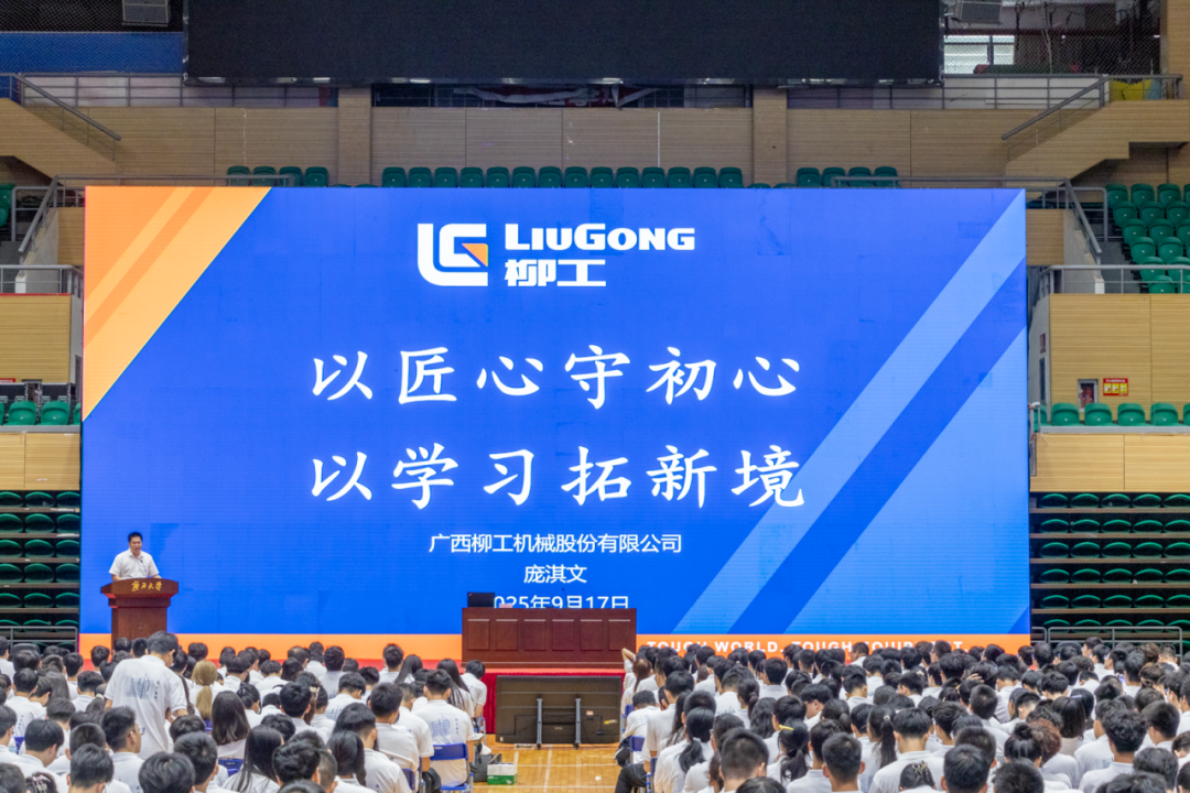 围绕“以匠心守初心,以学习拓新境”,全国劳动模范、广西柳工机械股份有限公司制造总监庞淇文受邀为新生讲授“工匠精神”专题课。他以朴实的语言分享了从基层技师到行业专家的成长历程,诠释了“爱岗敬业、精益求精、勇于创新”的精神内核。从“把每一次实验都做到极致”,到“用双手托起国家装备制造的脊梁”,庞淇文的故事,让青年学子感受到技能报国、奋斗成才的力量。