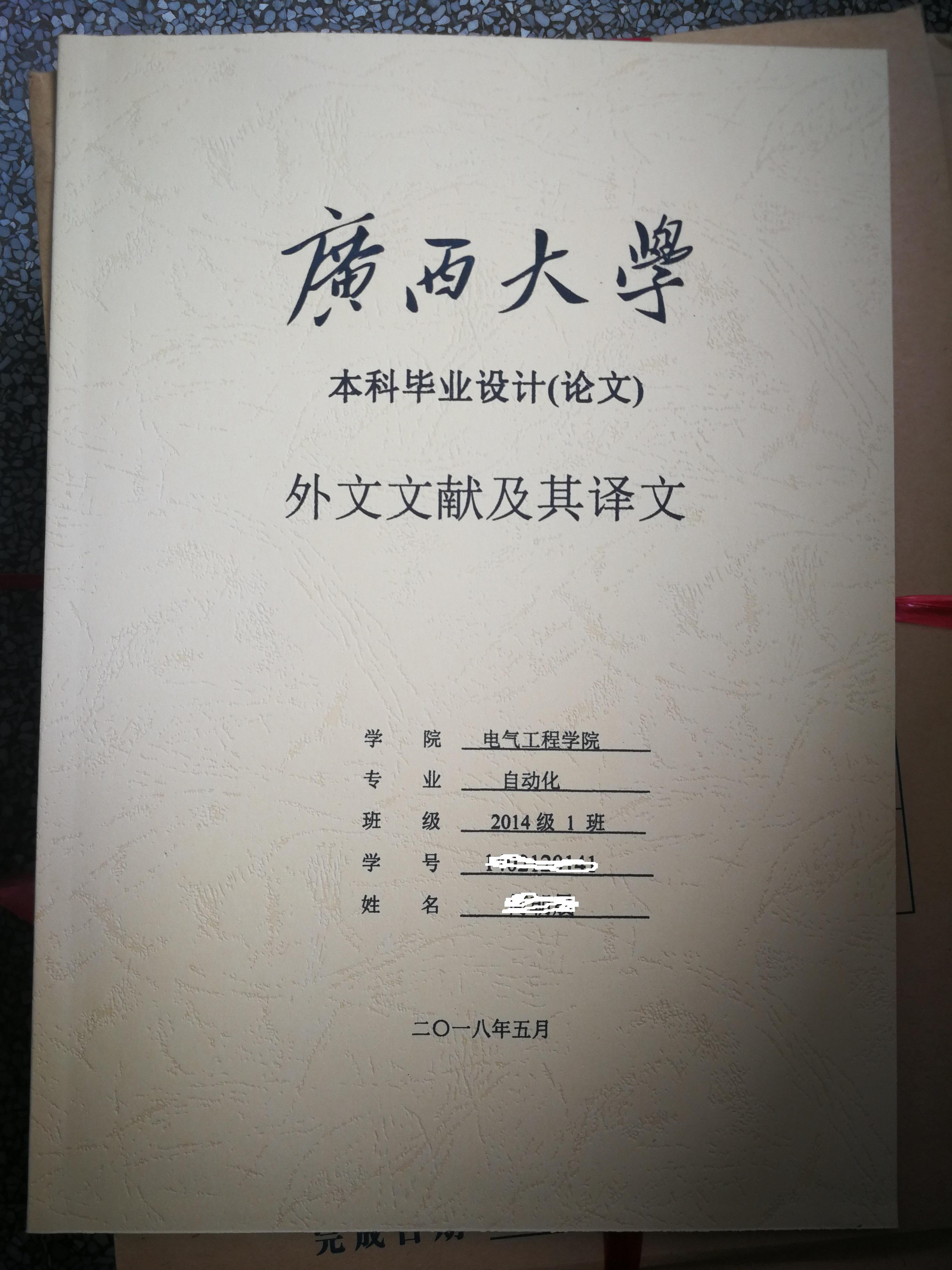 二、 外文翻译采用学校要求的封皮纸张打印装订,英文原文在前,译文在后。按规范要求用自己撰写的版本,不要用系统导出的文档。