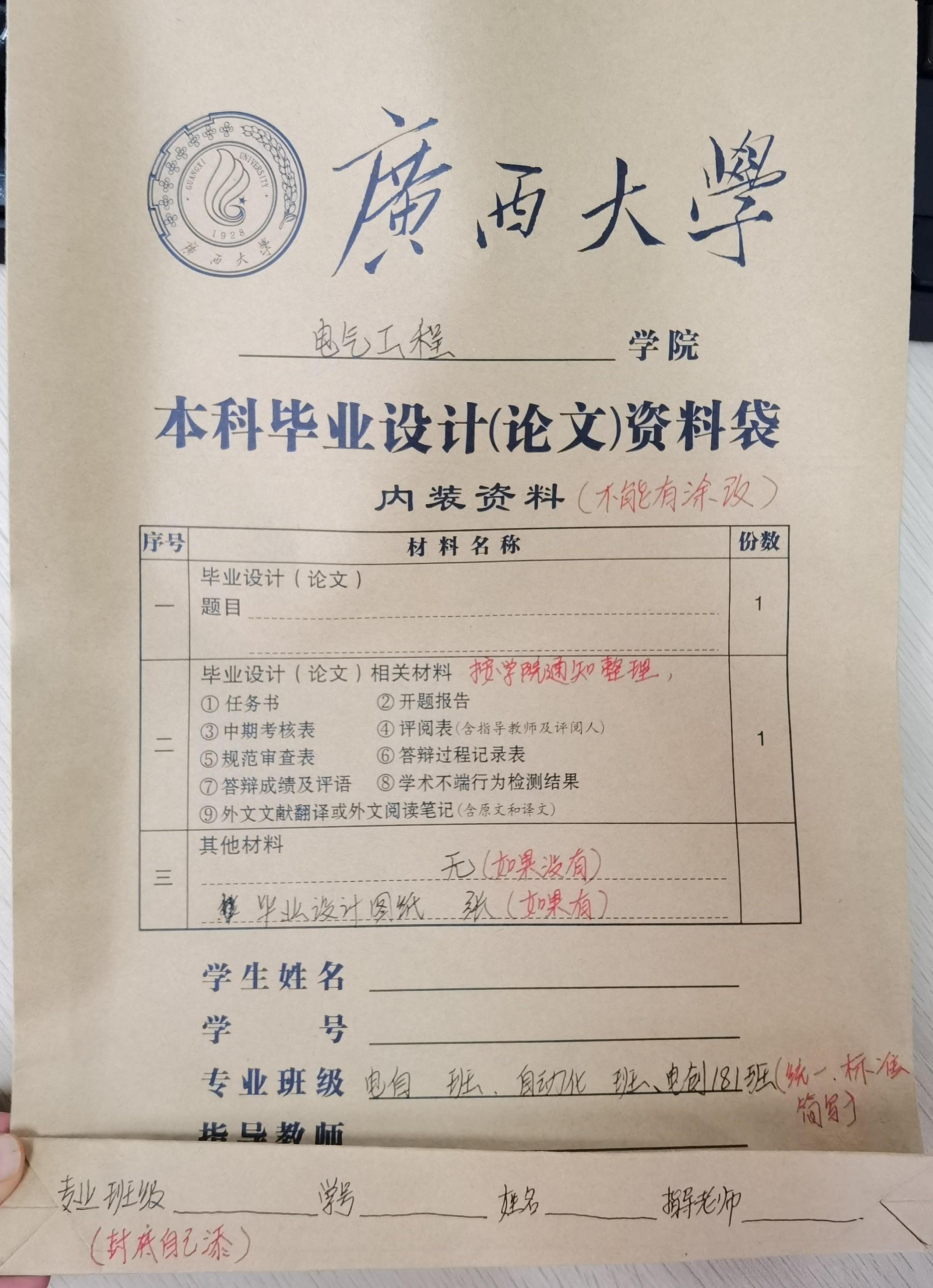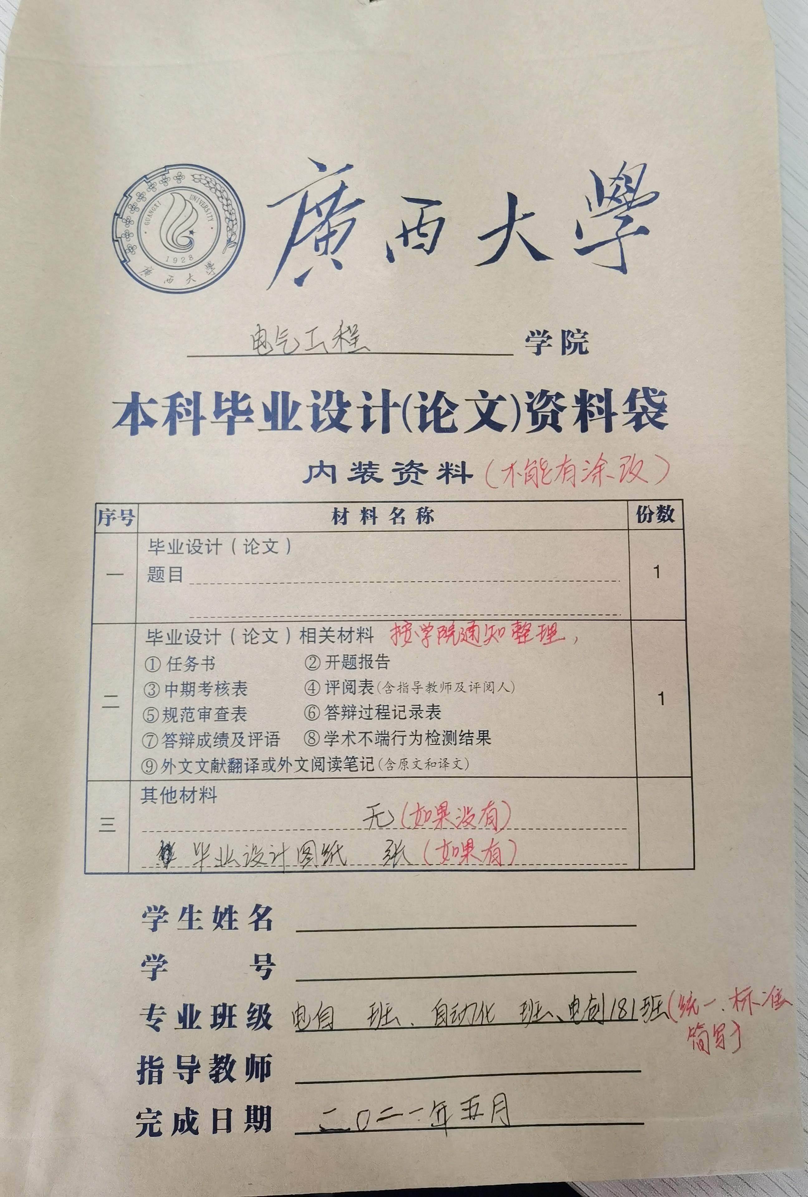 四、 设计图纸不装订(如有),直接放入资料袋。